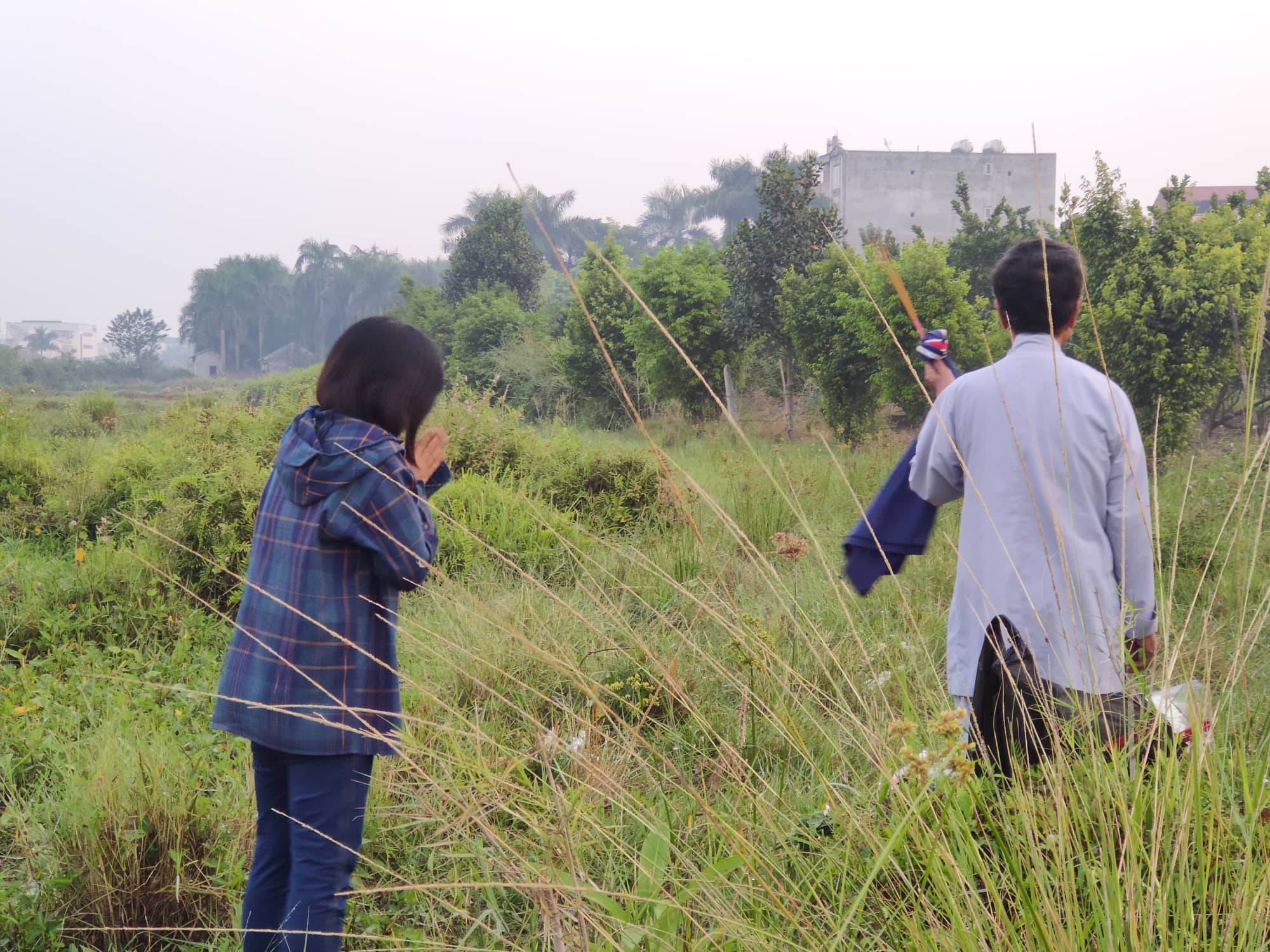 Sáng sớm 29/9, nhiều người thân đã trực tiếp đến khu vực nơi phát hiện thi thể nạn nhân để thắp hương. Tại đây cỏ mọc um tùm vắng bóng người qua lại. Đến gần 7h cùng ngày bà Thu cùng người thân gào khóc nhận thi thể của con trai đưa về quê chôn cất.