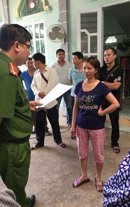 Công an đọc lệnh bắt đối với bà Hiền. Ảnh: báo Dân Việt.