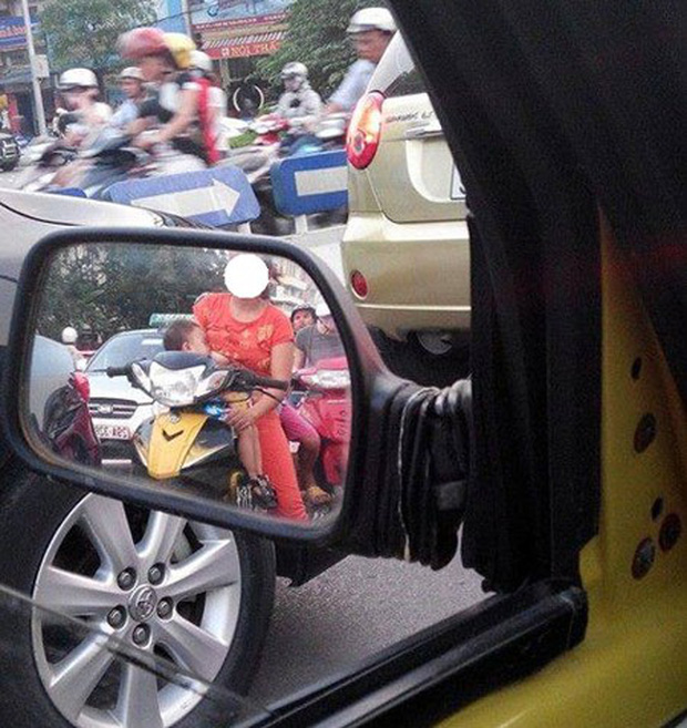 Mới đây, mạng xã hội vừa lan truyền hai bức ảnh người phụ nữ vừa điều khiển xe máy vừa cho con bú suốt cả một quảng đường dài khiến nhiều người ngỡ ngàng.