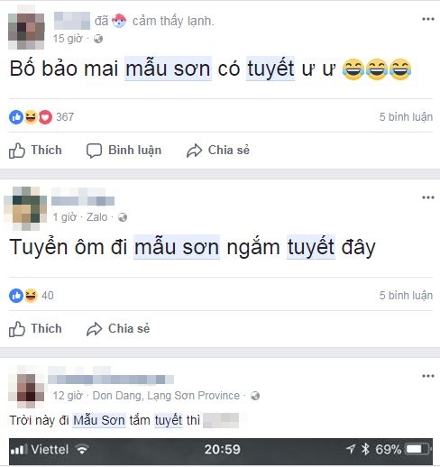 Lúc này, tại Hà Nội và nhiều địa phương, thời tiết đang có mưa phùn, gió lạnh và nhiệt độ chỉ khoảng 10 độ C. Trời rét, không khí ẩm khiến nhiều người suy đoán, các khu vực như Sapa, Mẫu Sơn… khả năng sẽ có tuyết rơi.