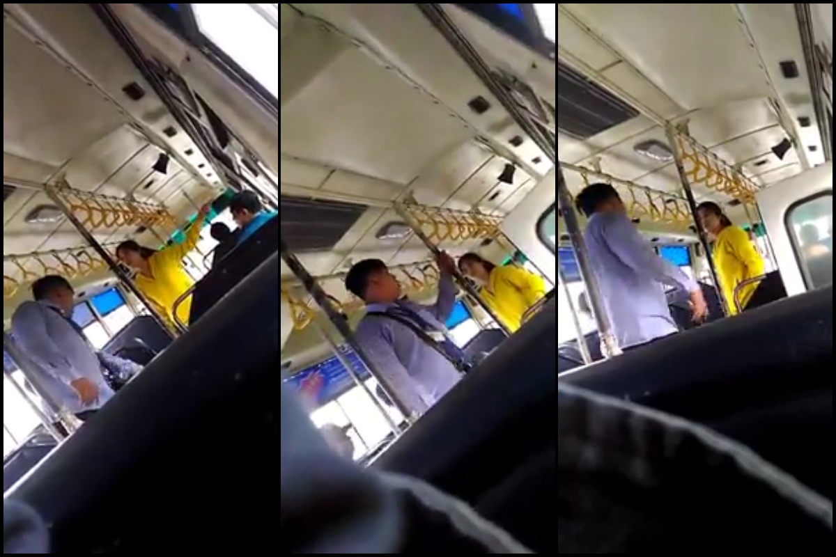 Không hài lòng với cách hành xử của nhân viên xe buýt, một phụ nữ mặc áo vàng đã có nhiều lời thậm tệ dẫn đến cuộc ẩu đả khiến nhiều hành khách trên xe phải bỏ xuống đường.