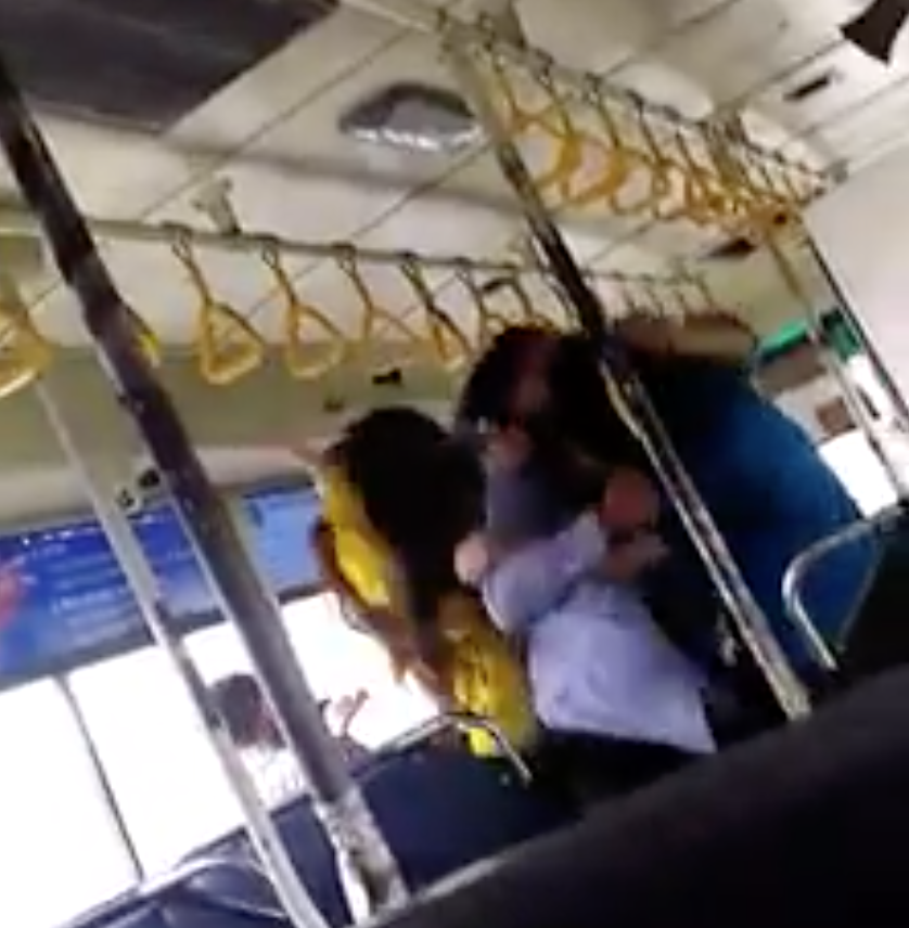 Clip ghi lại cảnh đánh nhau nảy lửa giữa cặp vợ chồng hành khách và nam nhân viên xe buýt.