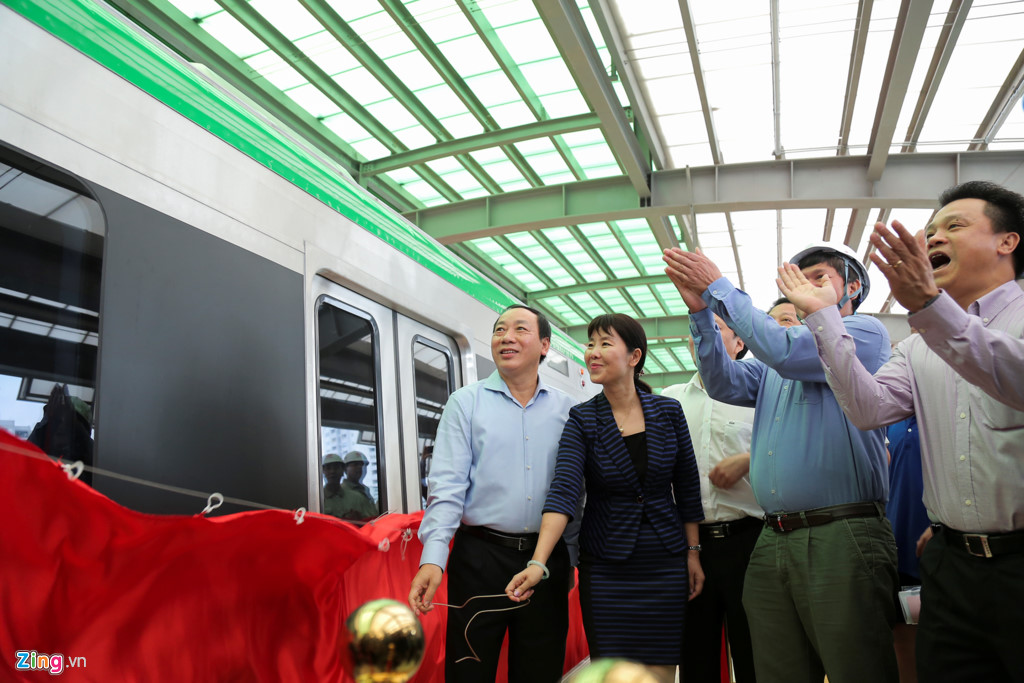 Thứ trưởng Bộ GTVT Nguyễn Hồng Trường và đại diện đại sứ quán Trung Quốc mở bạt nhà ga. Ông Trường cho biết tuyến đường sắt có ý nghĩa quan trọng trong việc giảm ùn tắc giao thông sau này. Đến nay dự án đã cơ bản hoàn thành gần 2 nhà ga.