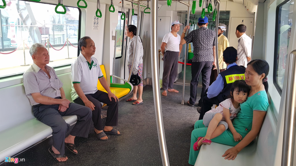 Trong số những người háo hức lên toa tàu tham quan phần lớn là người già và trẻ em.