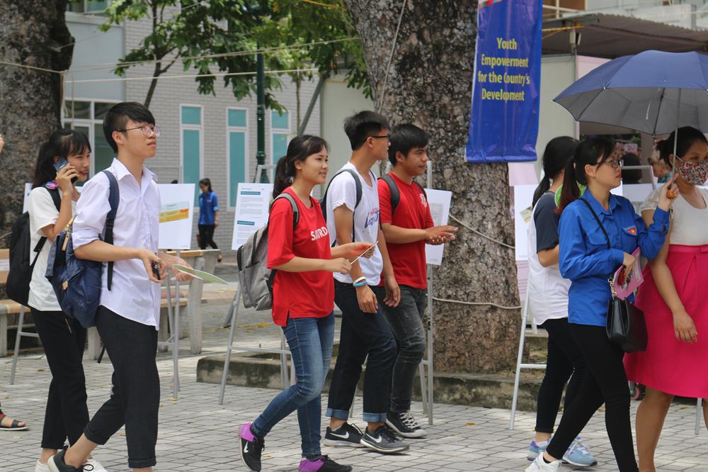 Học sinh phổ thông tham gia một sự kiện tuyên truyền về sức khỏe sinh sản cho học sinh, sinh viên do Marie Stopes Việt Nam hỗ trợ.