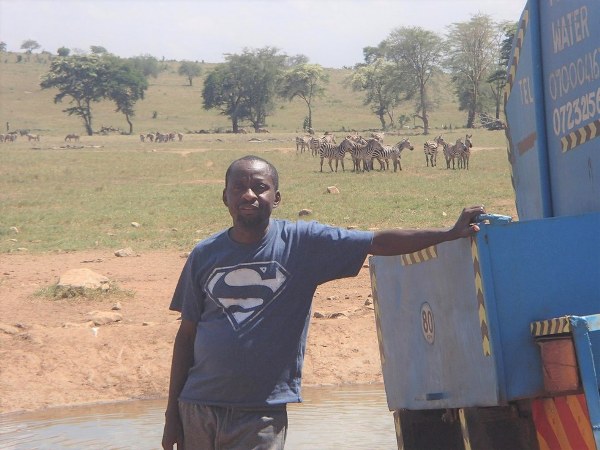 Anh Patrick Kilonzo Mwalua bên cạnh chiếc xe bồn chở nước quen thuộc.