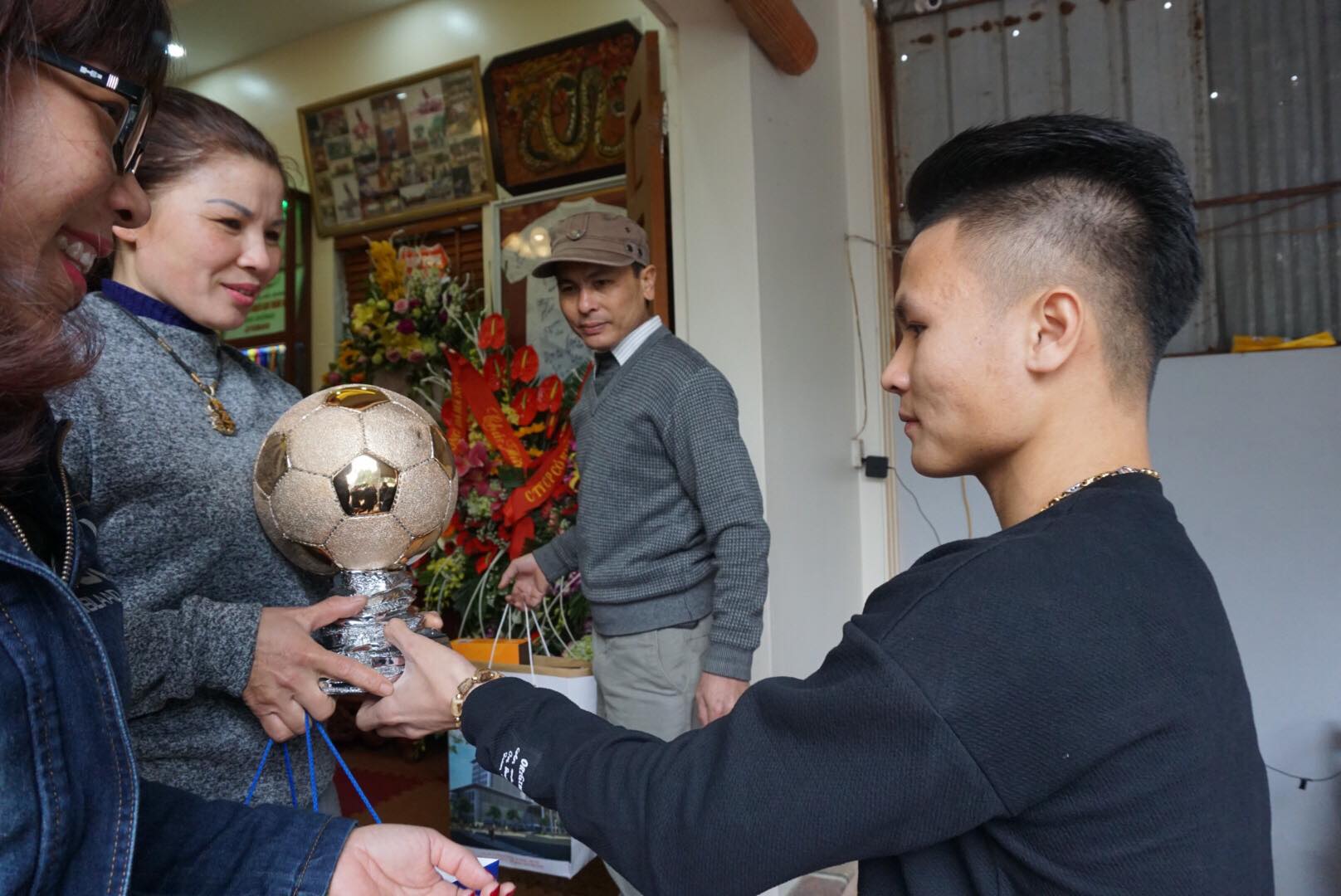Quang Hải vinh quy bái tổ không có những món quà tặng lớn, giá trị cho bố mẹ. Nhưng khi vừa đặt chân xuống taxi vào nhà, Quang Hải liền gửi tặng mẹ món quà nhỏ - Quả bóng đồng Việt Nam năm 2017. Nhận món quà ý nghĩa từ con trai, bà Dương Thị Cúc cười trong hạnh phúc. Bà cũng hy vọng rằng con trai sẽ luôn rèn luyện thi đấu tốt hơn trong những giải đấu sau.