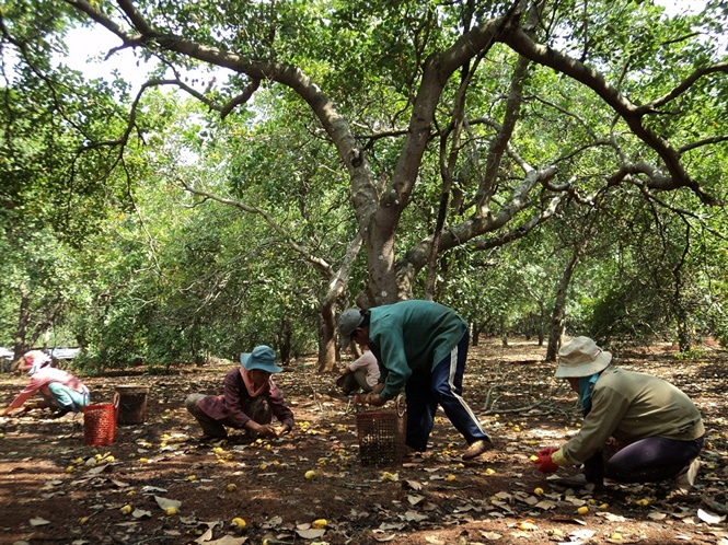 Mùa mưa bắt đầu, hạt điều “dính nước” nên giá đã giảm xuống rất nhiều so với thời đầu vụ. Con đường dẫn đến những rẫy điều cũng trở nên trơn trượt và xa hơn thường nhật là nguyên nhân khiến các chủ vườn “bỏ rẫy” không “lượm”. Đây cũng là thời gian, cơ hội để những người không có đất rẫy, chưa có việc làm đi “nhặt lộc”. Những người mót điều ở Bình Phước may mắn có thể kiếm được tiền triệu/ngày.