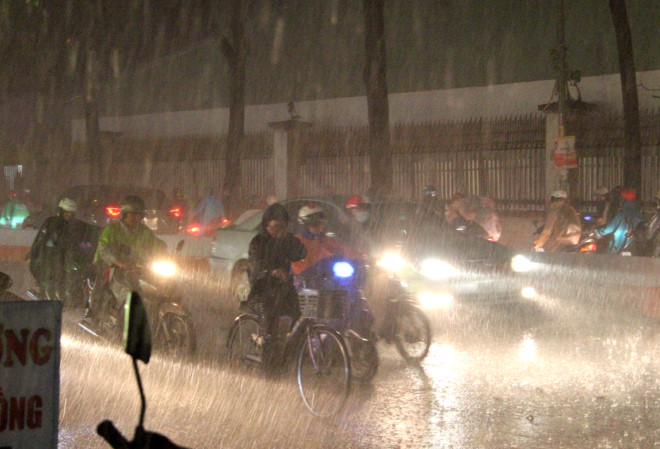 Khoảng 18h ngày 5/5, cơn mưa lớn bất ngờ đổ xuống các quận 1, 3, 5, 10, 11, Bình Thạnh, Gò Vấp. Nhiều người đi đường mắc mưa, ướt sũng; một số khác phải tấp vào hàng quán, nhà ven đường để tránh.