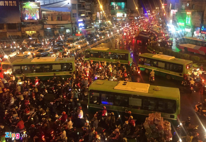 Mưa lớn khiến nhiều tuyến đường như Nguyễn Kiệm, Nguyễn Thái Sơn, Phan Văn Trị, Quang Trung (quận Gò Vấp), Xô Viết Nghệ Tĩnh, Điện Biên Phủ (quận Bình Thạnh),… kẹt xe nghiêm trọng.