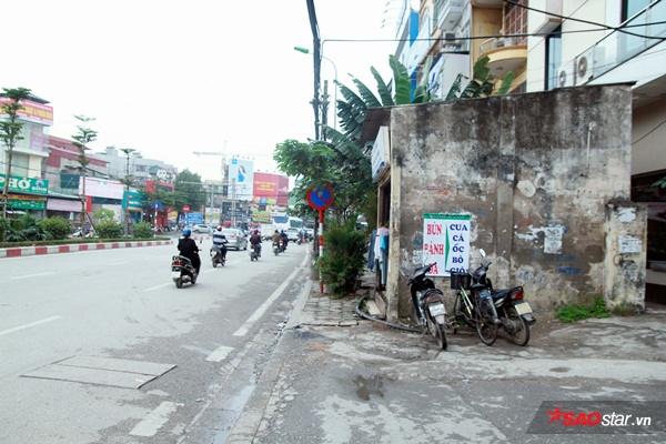 Căn nhà án ngữ ngay giữa vỉa hè đường Nguyễn Phong Sắc.