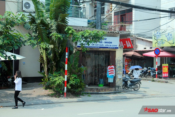 Ngôi nhà cũ kỹ, mái được lợp bằng bro xi-măng; tường đã bong tróc lớp vôi vữa nằm ở gần cổng phụ Học viện Báo chí và Tuyên truyền.