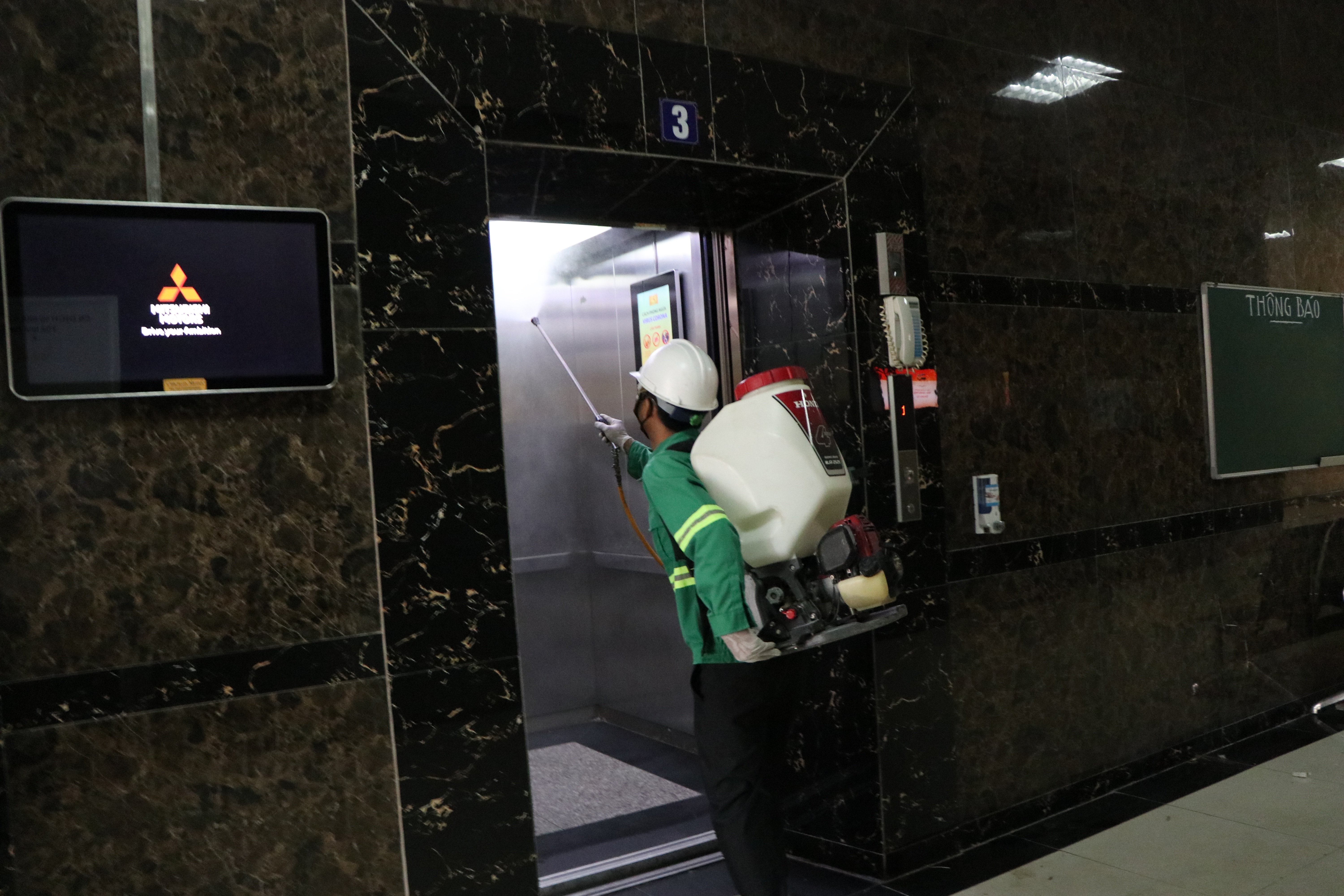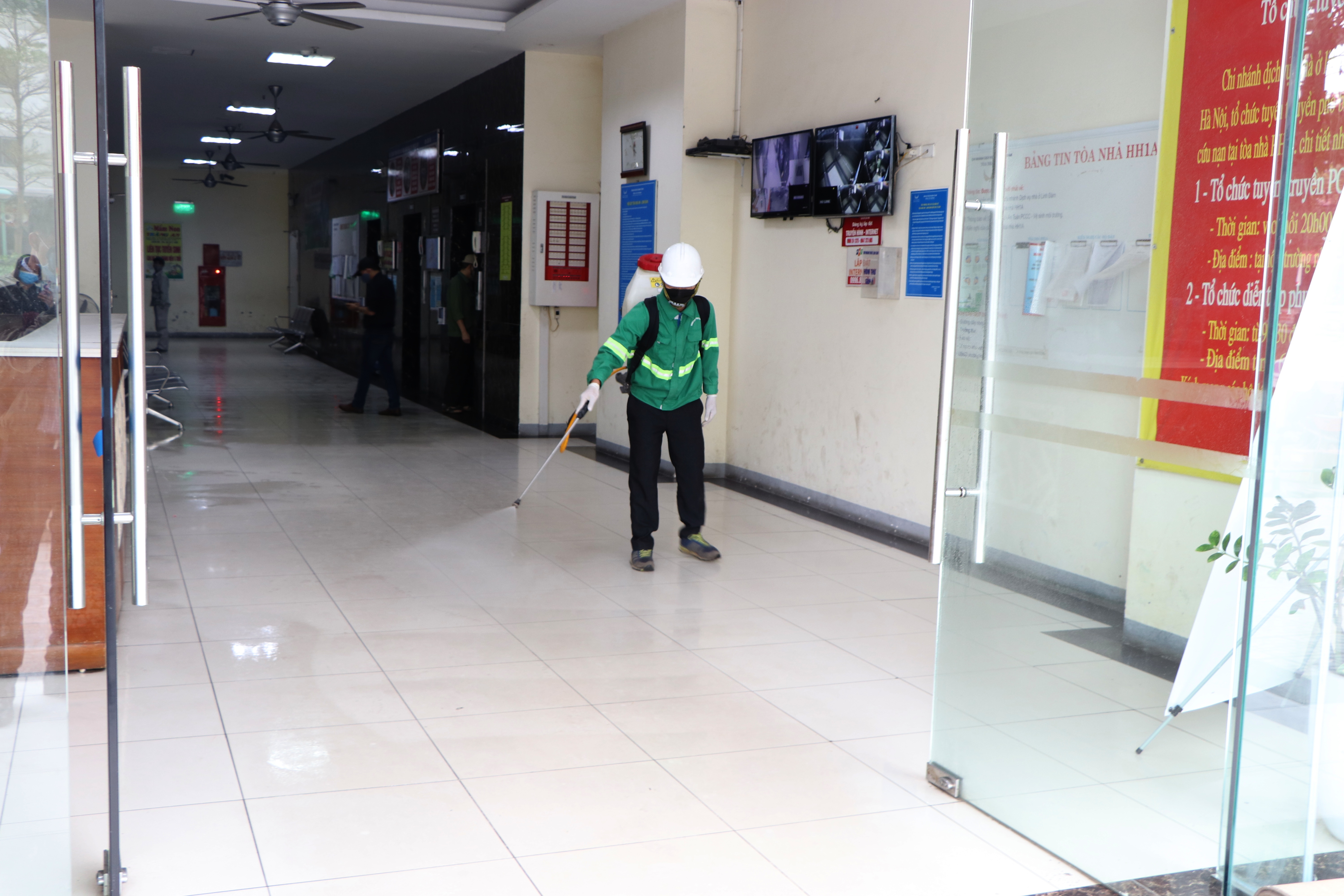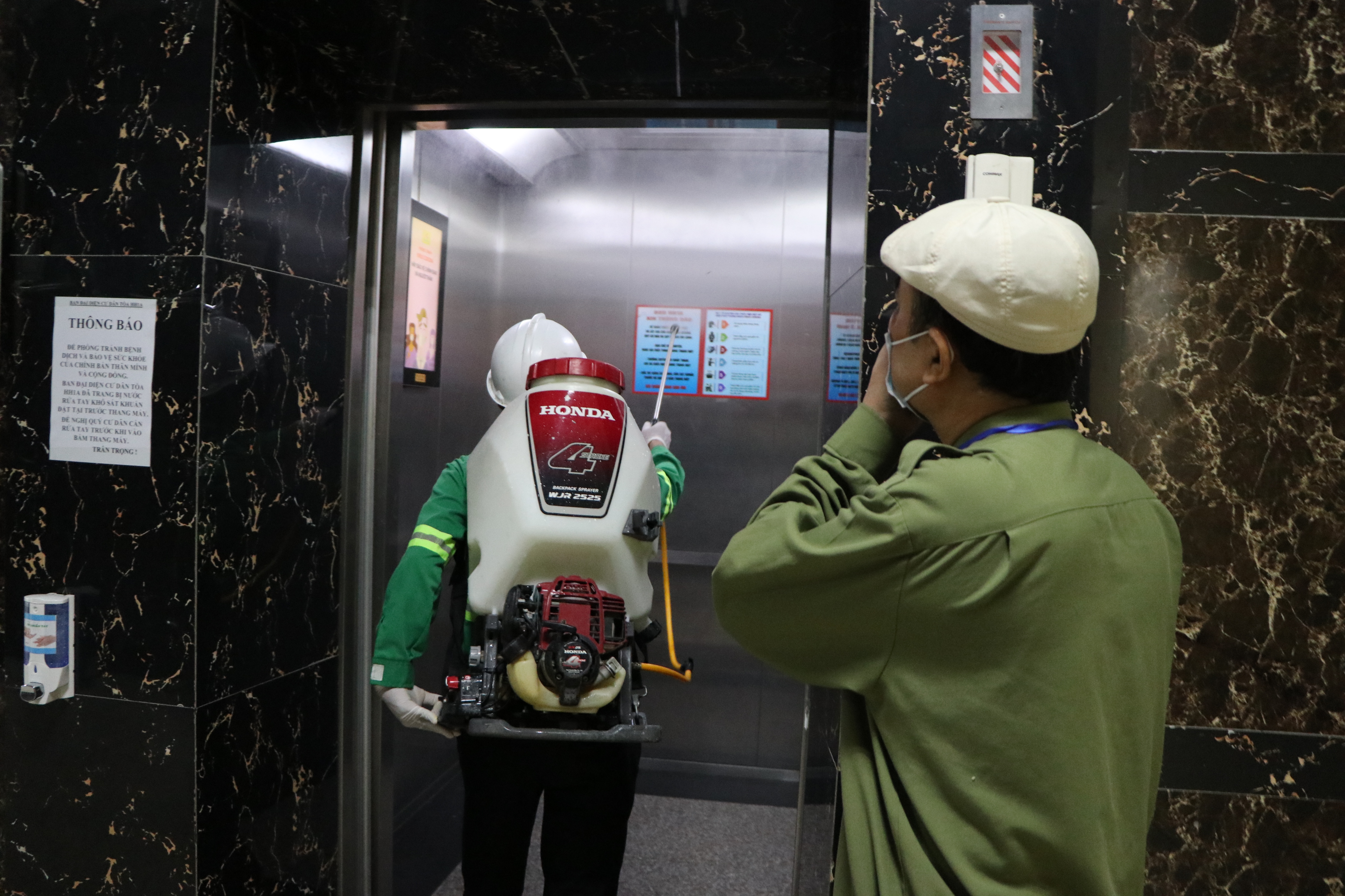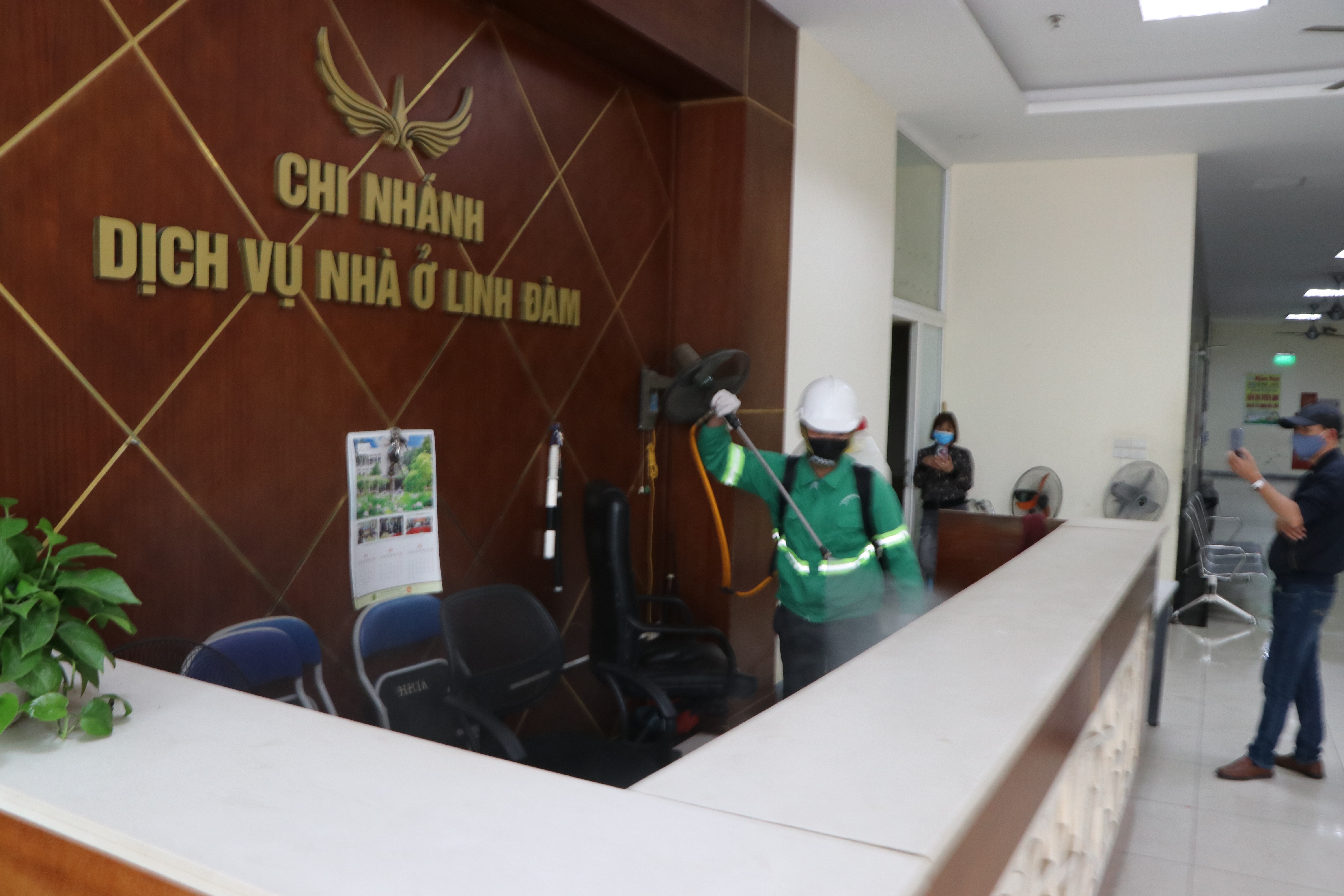 Sáng ngày 10/3 toàn bộ tổ hợp 12 toà nhà cũng đã được phun thuốc khử trùng khu vực tầng 1, toàn bộ khu vực sảnh phòng chống dịch bệnh. Ban quản lý toà nhà cũng nhắc nhở người dân hạn chế đi lại trong nửa tiếng để tiến hành khử trùng. Ngoài ra, cồn y tế được trang bị và duy trì liên tục tại cầu thang máy của các tòa nhà kể từ khi có dịch COVID-19 đến nay.