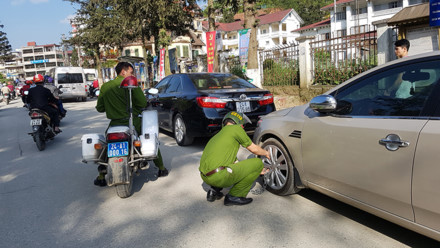 Thiếu thốn chỗ đỗ xe là vậy, nhưng lực lượng chức năng địa phương lại tỏ ra vô cùng hăng hái trong việc xử lý vi phạm. Trong ảnh là một chiếc xe đang bị khóa bánh.