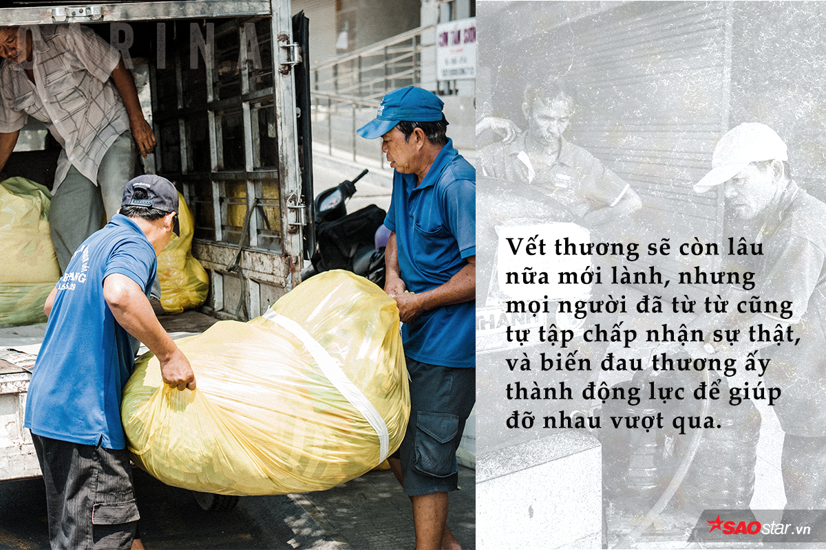 Đều đặn 5h sáng, bà Ly lại thức dậy, đạp xe từ Q.8 đi đến chợ để lựa từng mớ rau tươi, gạo ngon rồi ra thẳng căn nhà cũ cạnh hông chung cư Carina thổi lửa. 10h, cơm vừa chín, bà lại tất bật chở qua chung cư, giao cho từng hộ gia đình nạn nhân Carina. “Lúc đầu tính làm để bận rộn không còn thời gian nhớ nhung, đau buồn nữa. Còn giờ làm vì muốn giúp người ta.” - bà Ly chia sẻ.