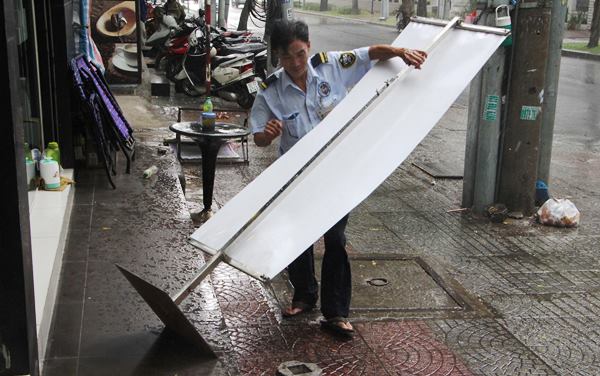 Bảng hiệu quảng cáo bị lốc giật phăng.