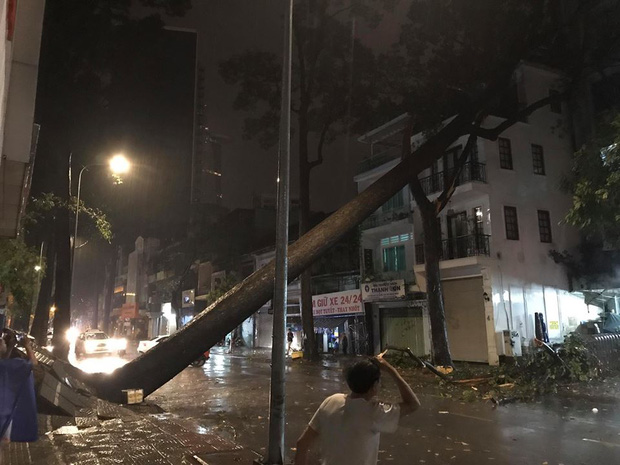 Ngoài ra, gió lớn còn làm một cây cổ thụ trên đường Nguyễn Thái Bình, quận 1 bị bật gốc. Ảnh: V.H.T