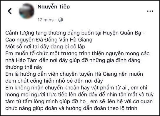 Chia sẻ thêm về hoàn cảnh vô cùng đau thương của bà con huyện Quản Bạ, Hà Giang những ngày lũ quét, anh Nguyễn Tiệp cho biết anh vừa đến Hà Giang được 1 ngày thì hôm sau lũ về. Người dân ở đây đã mất tất cả từ nhà cửa, người thân, con cái, hoa màu…Cuộc sống thường ngày của họ đã khổ rồi giờ lại thế này thì họ biết sống tiếp thế nào. Mọi thứ hiện ra trước mắt anh đầy ám ảnh và nước mắt, ai cũng mong 1 phép màu nhưng không thành hiện thực.