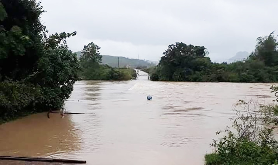 Cầu tràn ở Minh Hóa (Quảng Bình) bị ngập sâu do mưa lớn. Ảnh: Báo Giao thông