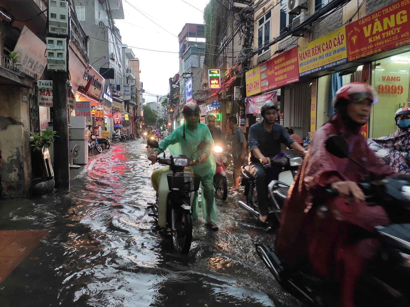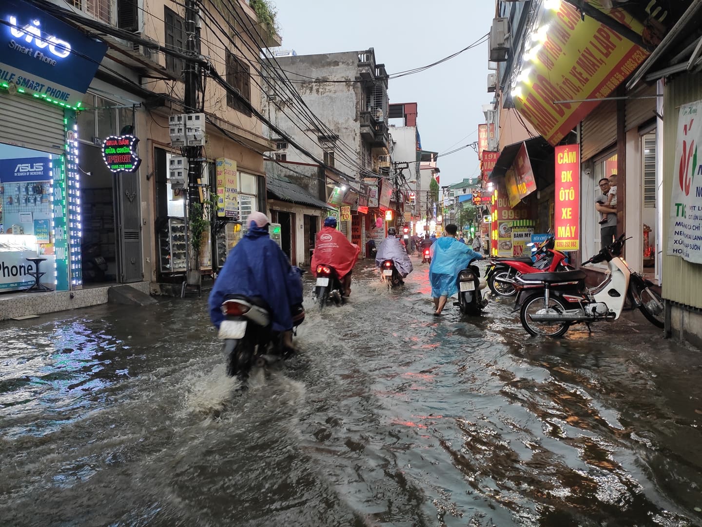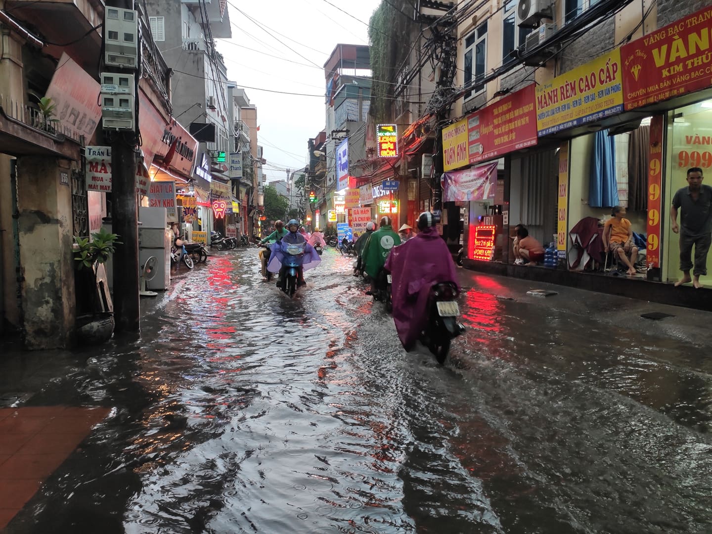 Tại tuyến đường Cổ Nhuế đã xảy ra tình trạng mưa ngập sâu khoảng 30cm.