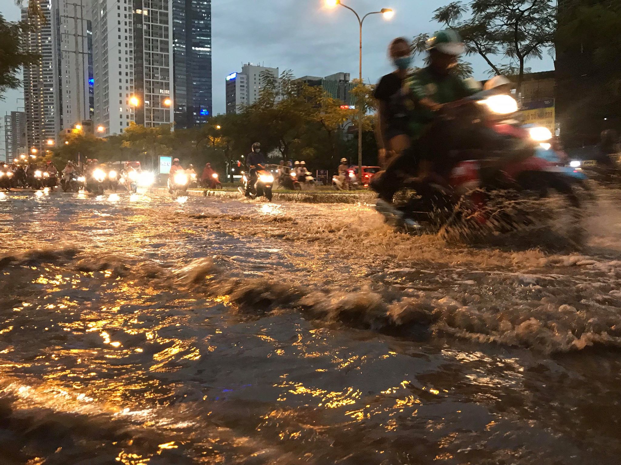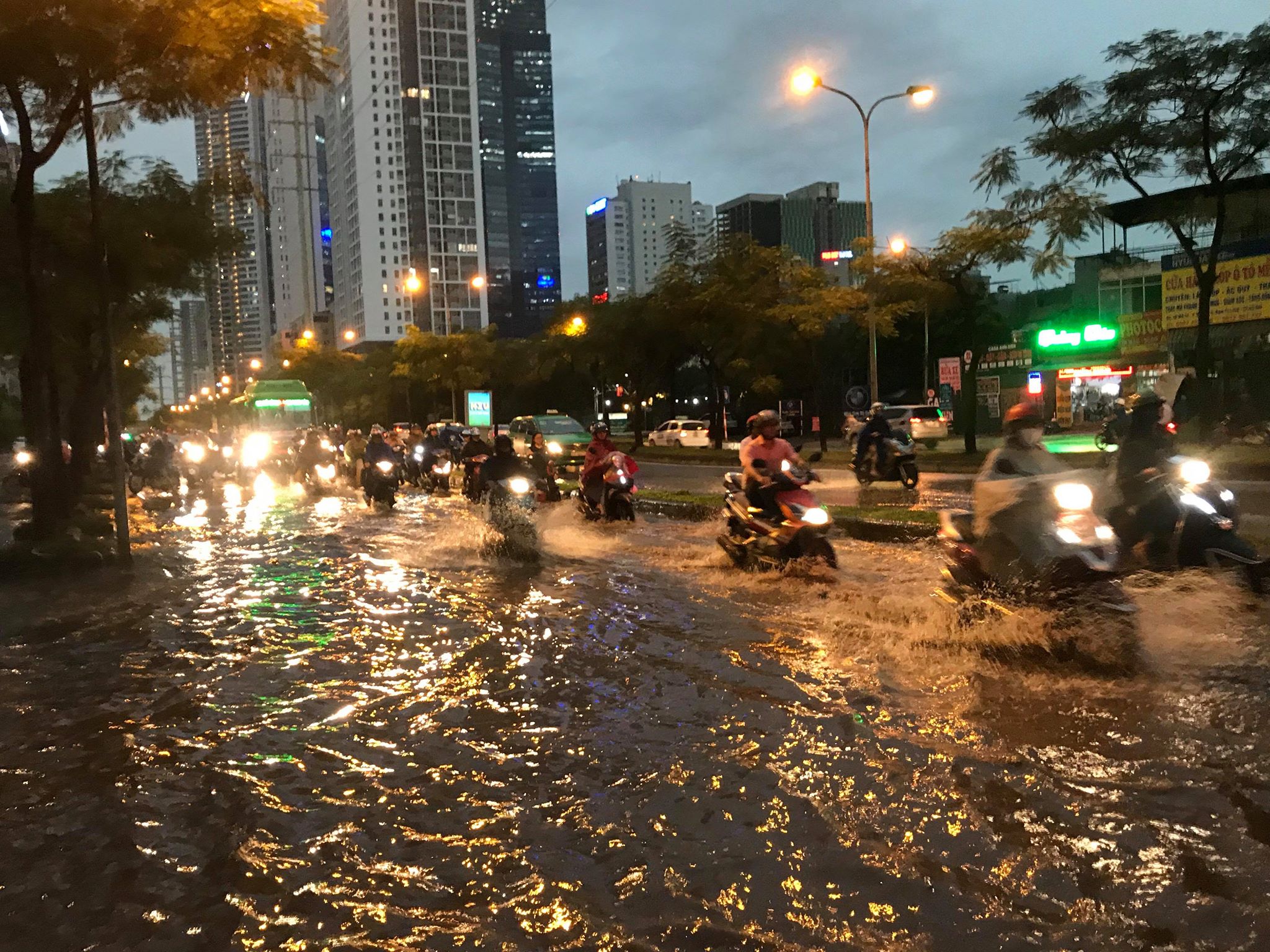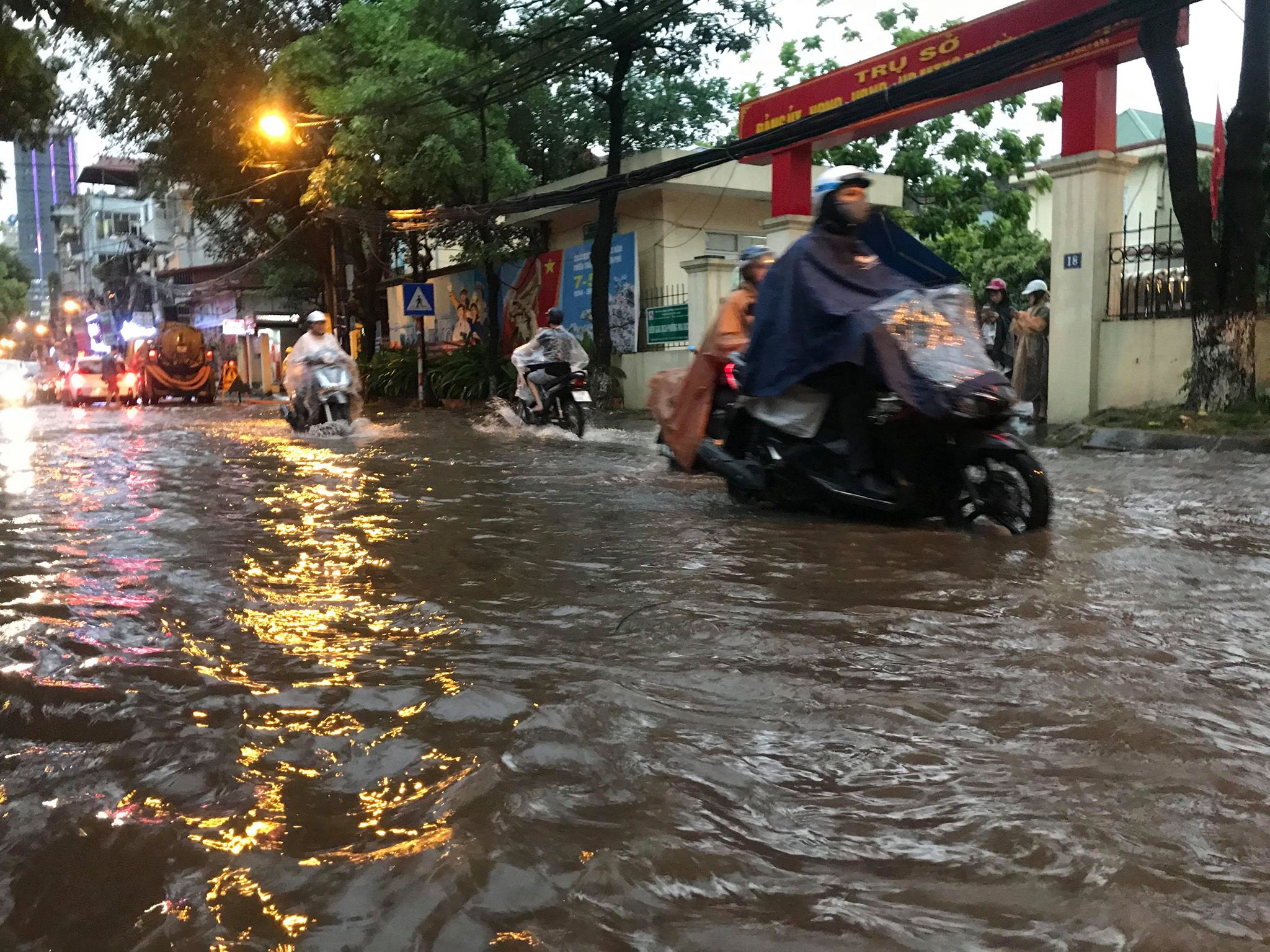 Tại tuyến đường Cổ Nhuế đã xảy ra tình trạng mưa ngập sâu khoảng 30cm.