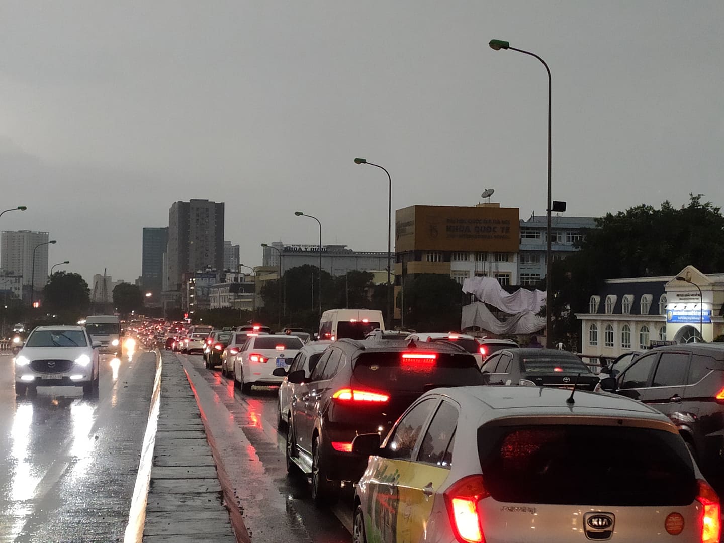 Tuyến đường cầu Mai Dịch xuôi về Phạm Văn Đồng ùn tắc kéo dài.
