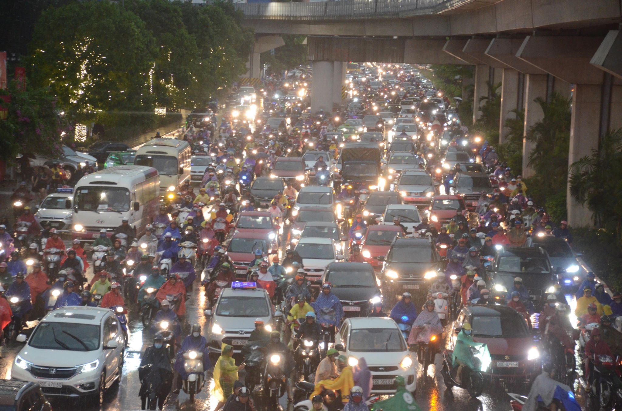 Chiều tối 15/7, cơn mưa nặng hạt kèm theo gió lốc xảy ra ở nhiều khu vực trên địa bàn TP Hà Nội khiến người đi đường di chuyển hết sức vất vả. Chính vì mưa lớn xảy ra giờ tan tầm khiến nhiều tuyến đường ách tắc.