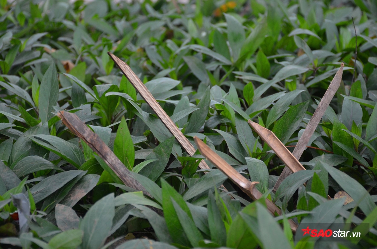 Chông tre được cắm ở các luống hoa.