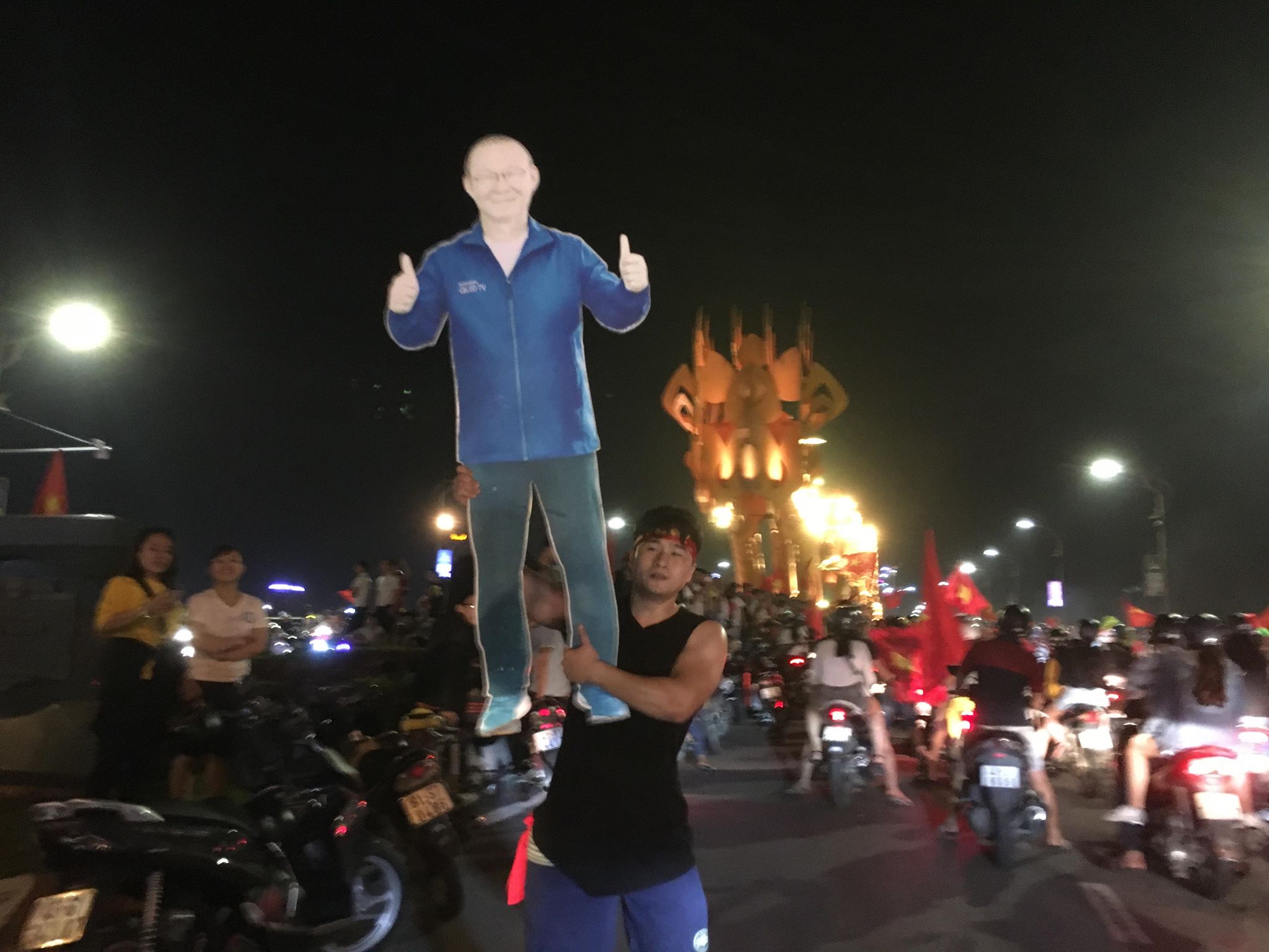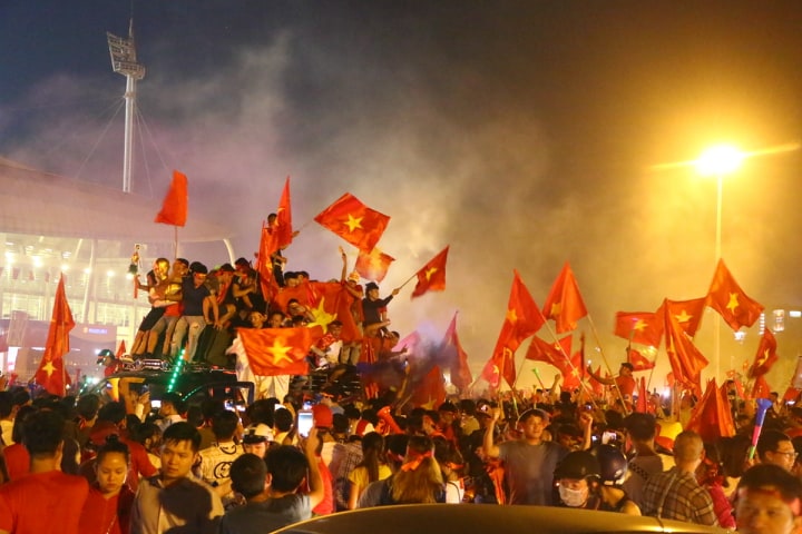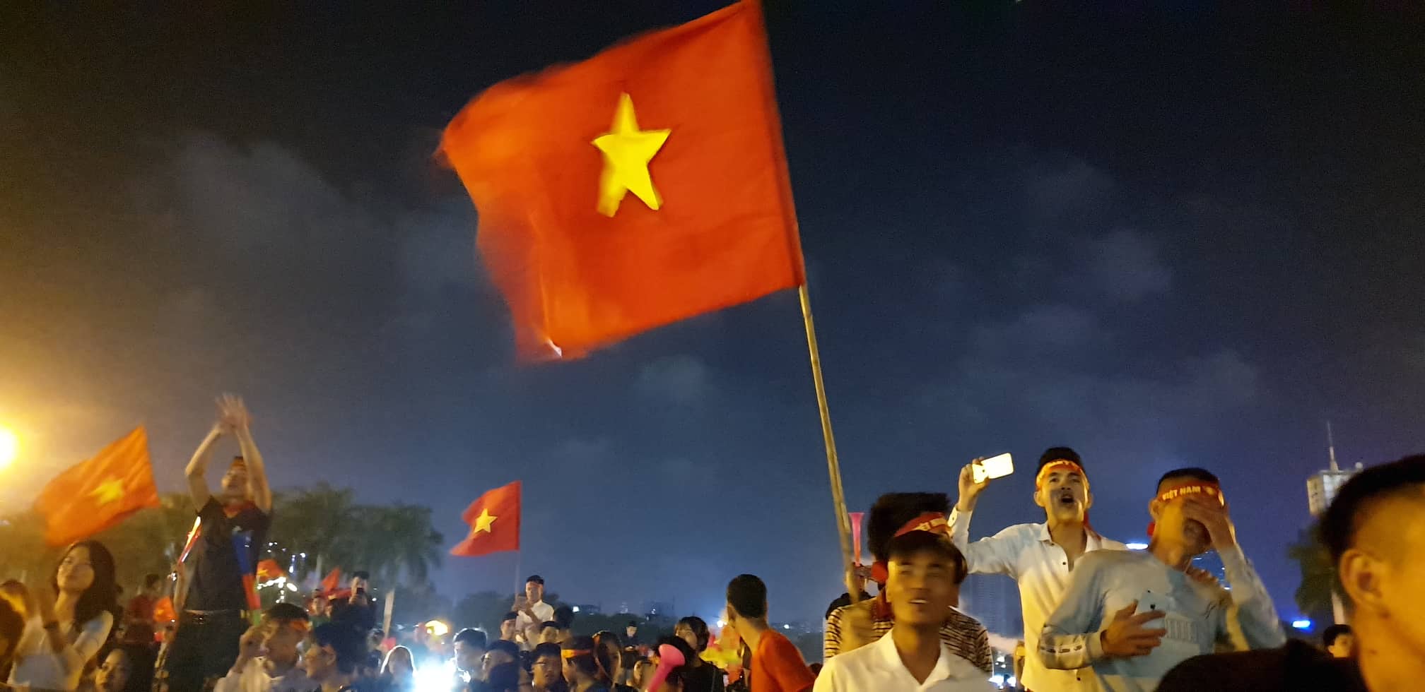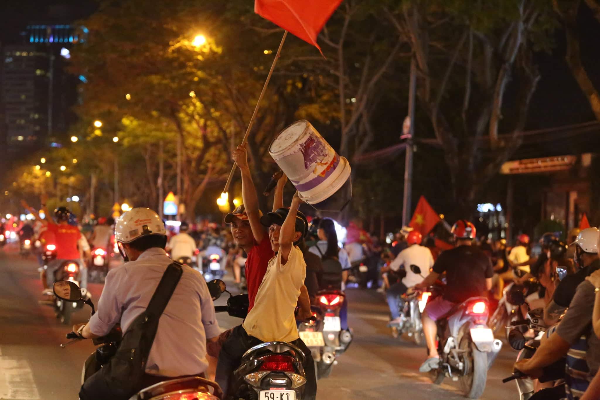 Ngay sau khi tiếng còi kết thúc trận đấu vang lên, tuyển Việt Nam giành chiến thắng vào chung kết AFF Cup, người hâm mộ cả nước đã đổ ra đường ăn mừng. Không thể miêu tả hết vô vàn cách mà cổ động viên thể hiện tình yêu với bóng đá. Phất cờ rợp đỏ, thổi kèn, đánh trống, hô vang “Việt Nam chiến thắng”, “Việt Nam vô địch”… Cảm xúc vui mừng chiến thắng như kéo dài ra đến vô tận.