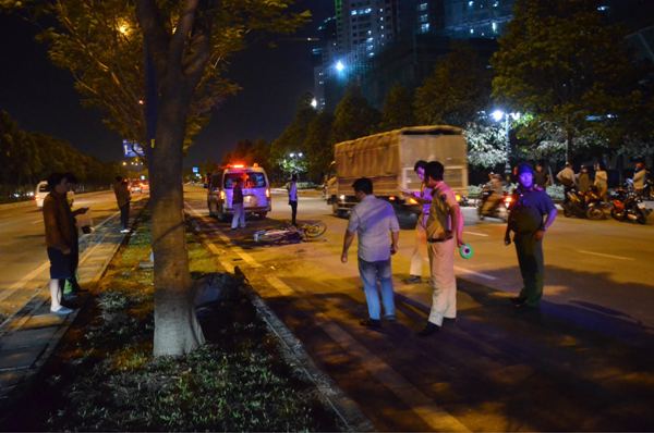 Tại hiện trường, bên cạnh thi thể của nạn nhân là chiếc xe máy hiệu Max mang BKS: 59B1 - 403.23 bị bể nát, nhiều mảnh vỡ bắn tung toé khắp nơi. Dải phân cách giữa làn ô tô và xe máy nơi xảy ra vụ việc có vết cày xéo.