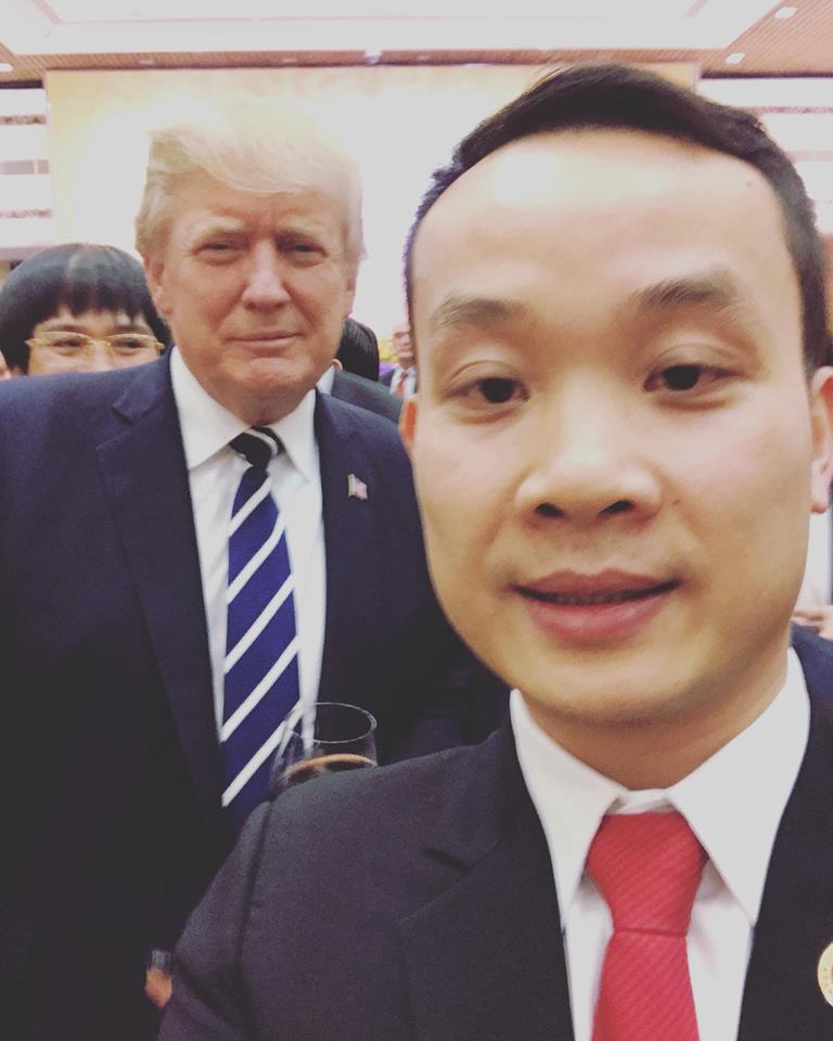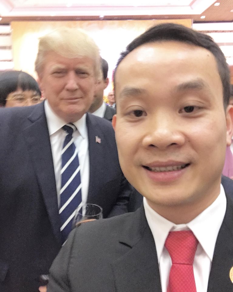 Mới đây, một doanh nhân trẻ đã trở thành tâm điểm chú ý của cư dân mạng khi khoe ảnh selfie cùng Tổng thống Mỹ Donald Trump trong tiệc quốc yến nhân dịp ông Trump qua thăm Việt Nam.