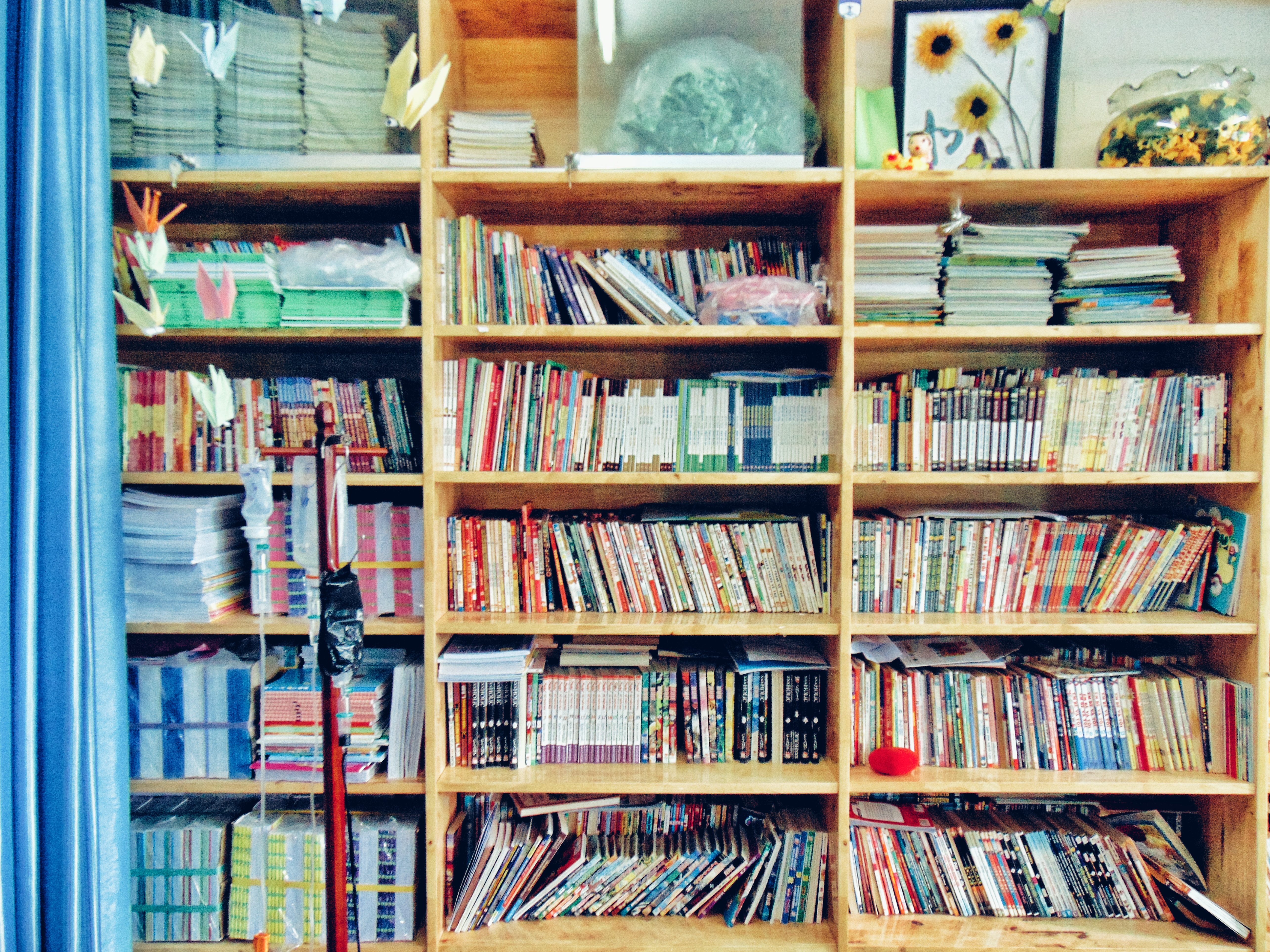 Lớp học có tủ truyện tranh và sách tham khảo, giúp các em thư giãn sau giờ học.