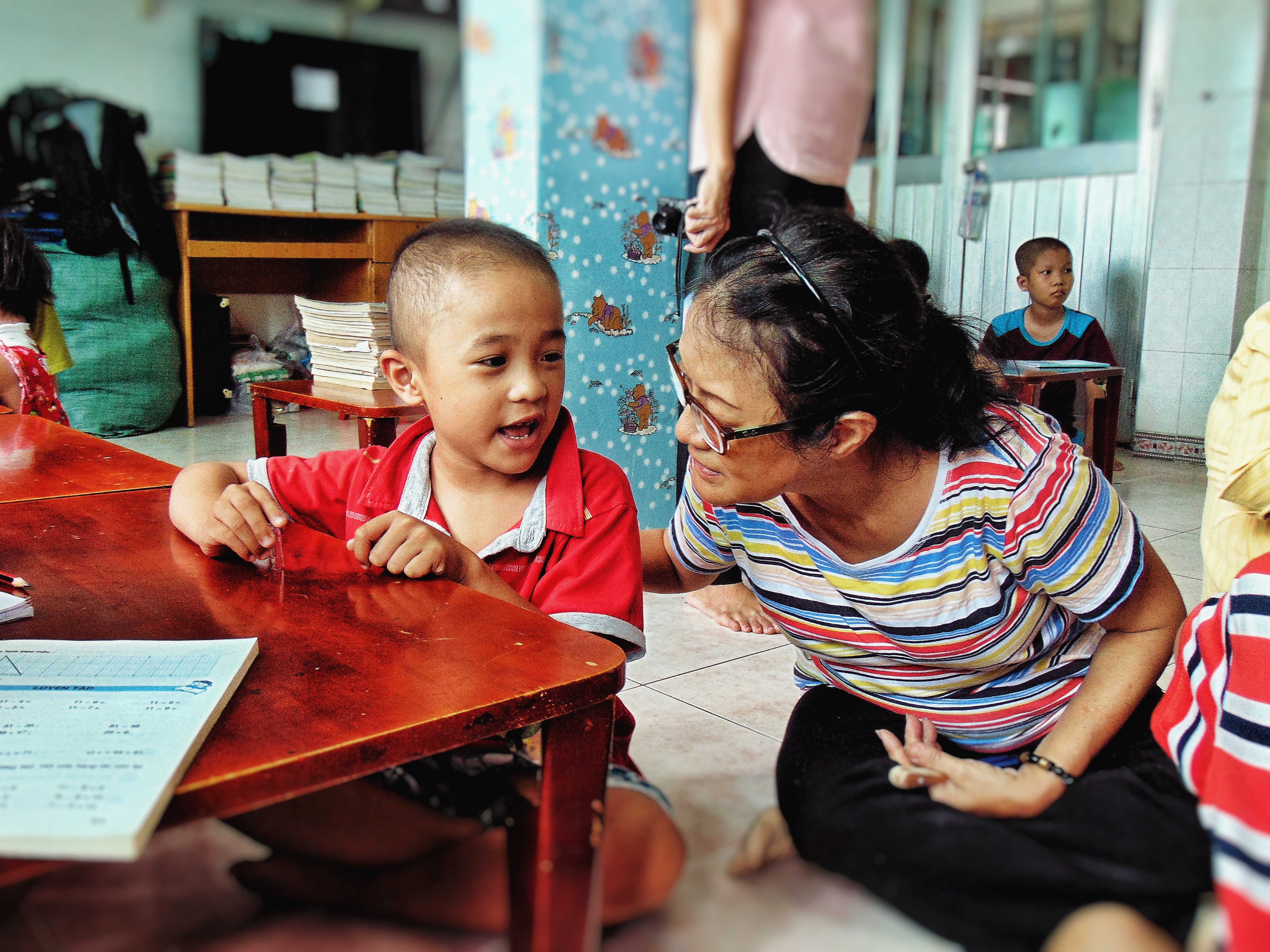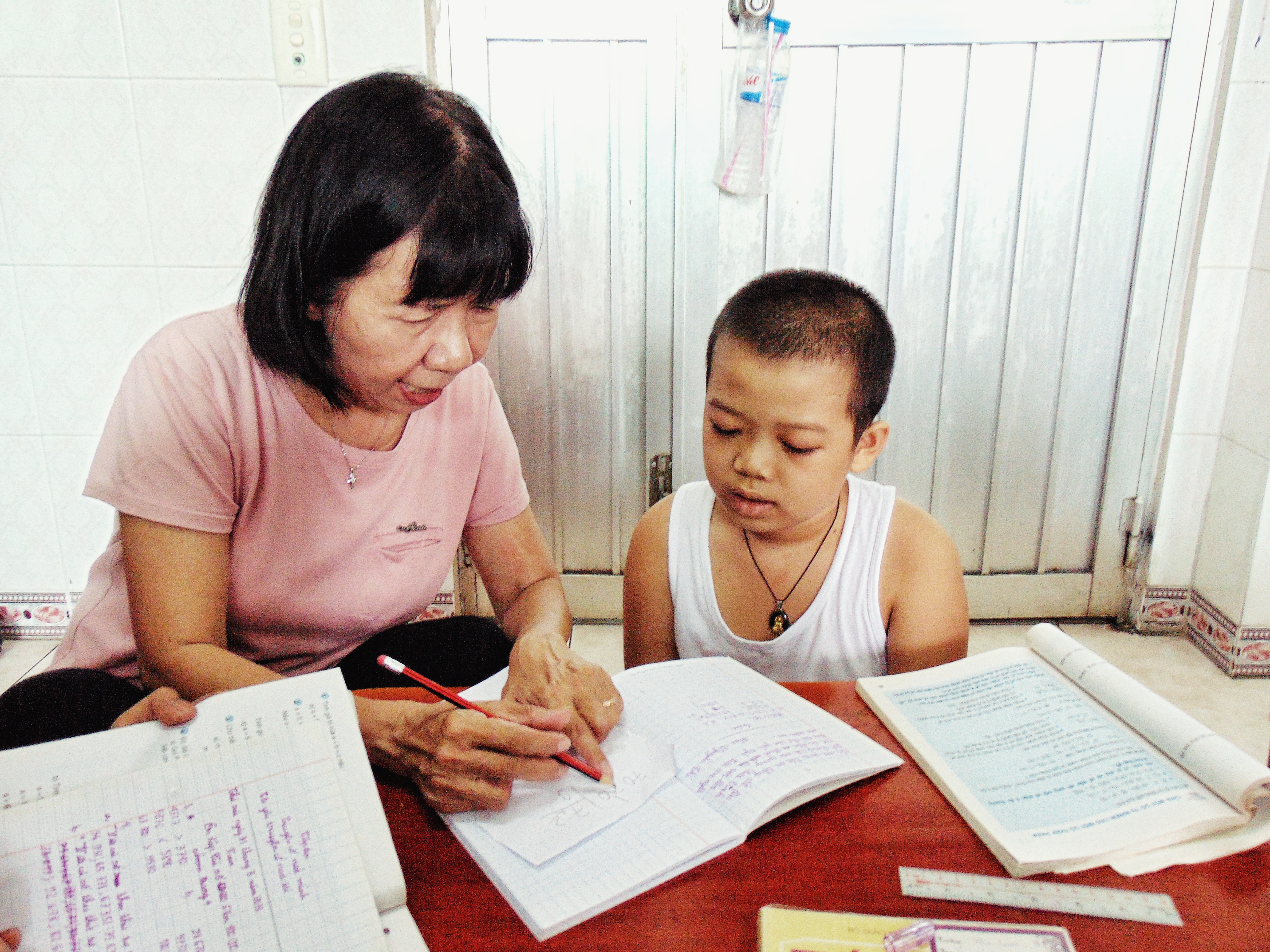 Những ngày đầu tiên khi tham gia lớp học vào 5 năm trước, tôi nhận kèm cặp một cậu bé mắc chứng ung thư não. Cậu bé gặp khó khăn trong việc nhận thức, chứ nói gì là tiếp thu kiến thức, nhưng vẫn ham muốn học thật nhiều. Tôi dạy em được vài buổi thì biết tin em đã không còn trên cõi đời này”, cô Loan, một giáo viên hưu trí đã bước sang tuổi 60, chia sẻ.