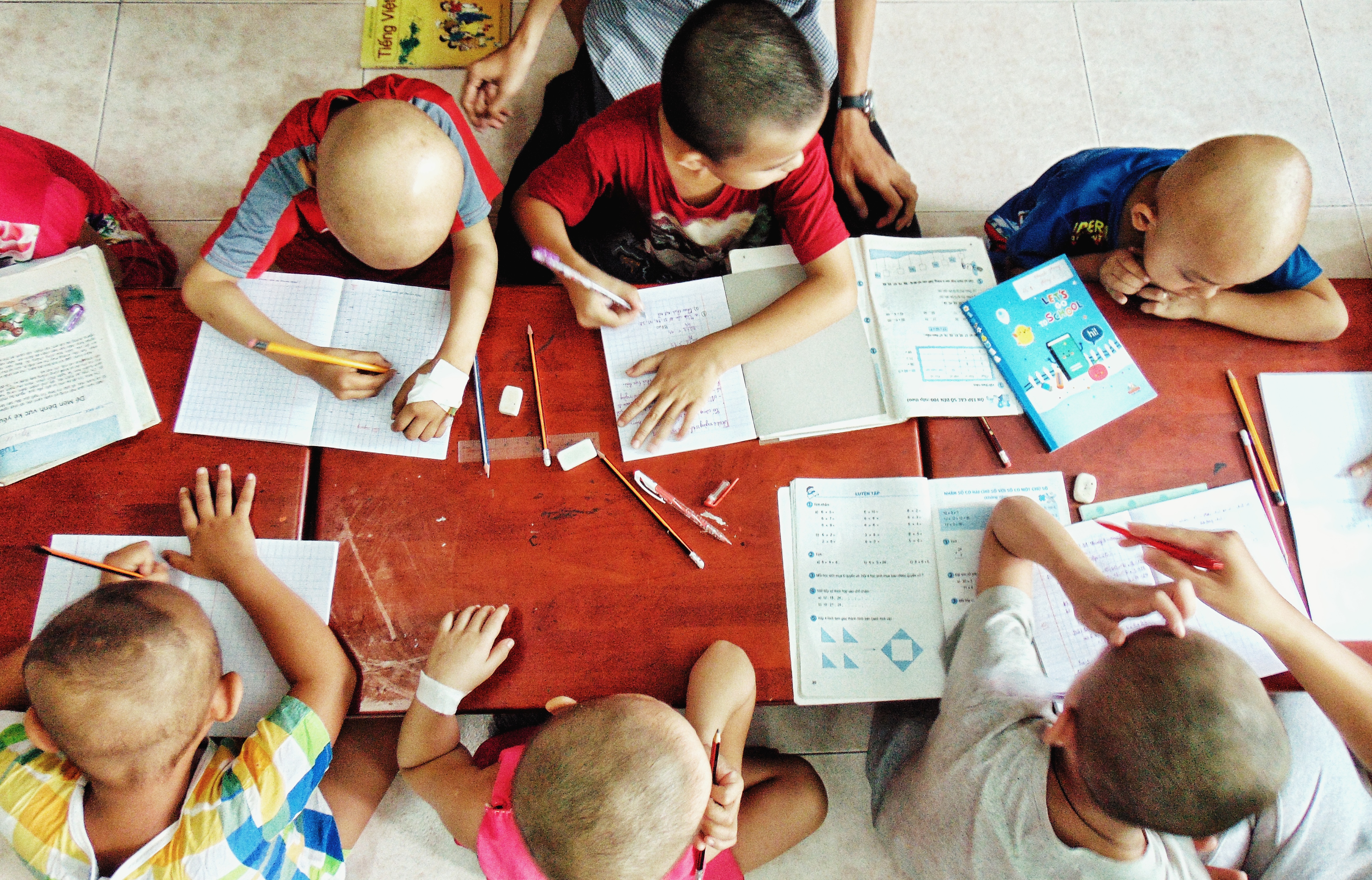 Một căn phòng nhỏ rộng chưa đến 30 mét vuông lọt thỏm giữa không gian chật chội của Bệnh viện Ung bướu TP.HCM, là lớp học đầy ắp tình thương của những giáo viên đặc biệt và những học trò đặc biệt.