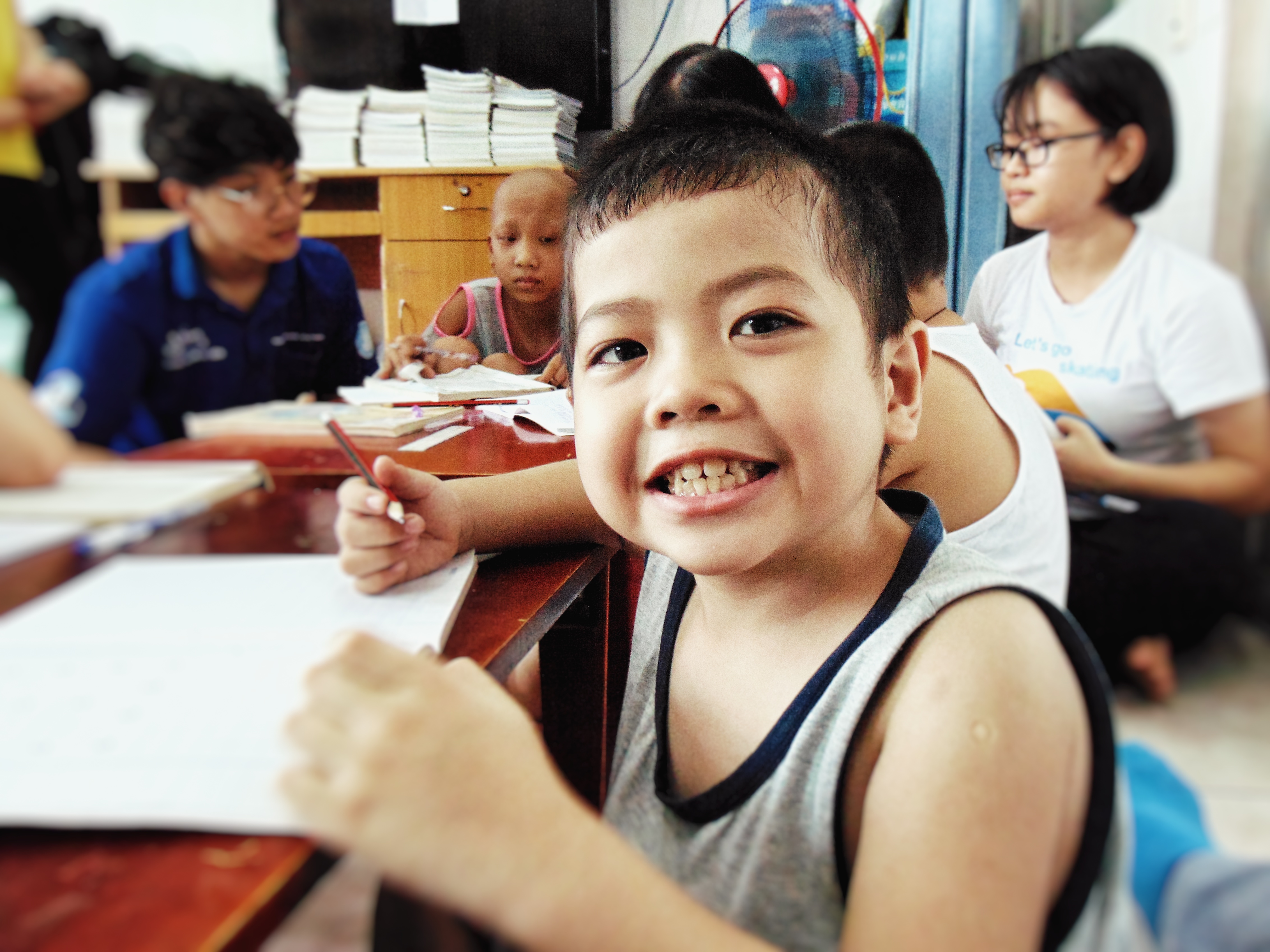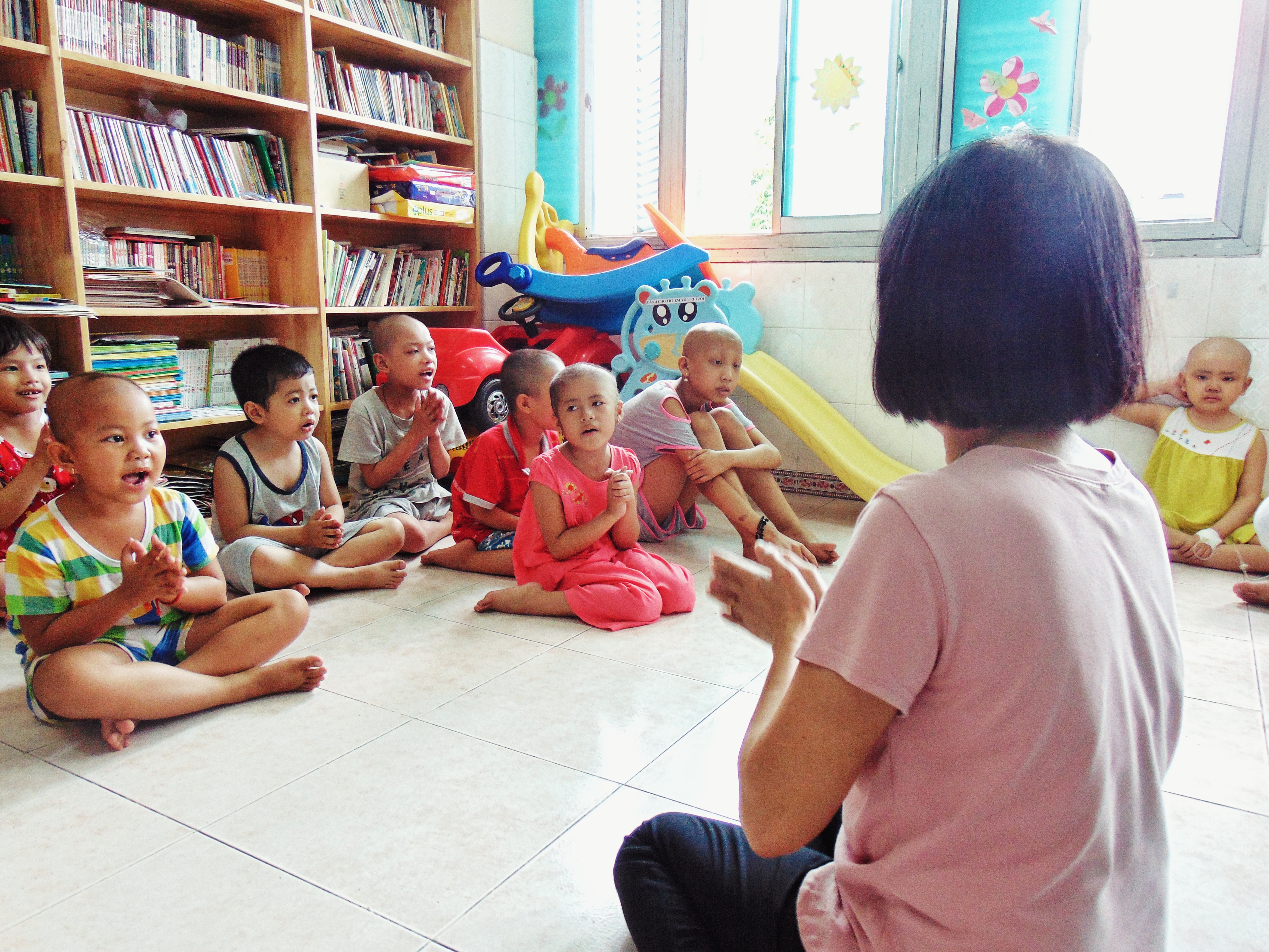 Cứ đều đặn vào đúng 14 giờ chiều thứ sáu từ năm 2009 cho đến nay, dù không có tiếng trống trường hay chuông báo, nhiều bệnh nhi đang nằm chữa trị dài hạn ở bệnh viện nhanh chóng bước vào căn phòng học chung. Tại đây, các cô và các bạn tình nguyện viên đã sắp xếp bàn ghế, chuẩn bị tập vở để các em bắt đầu buổi học.