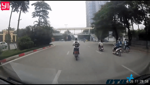 Sự việc xảy ra vào lúc 11h30 ngày 26/8 trên một tuyến đường tại Hà Nội, toàn bộ hành vi của nam sinh này được camera hành trình của xe ô tô đi phía sau ghi lại.