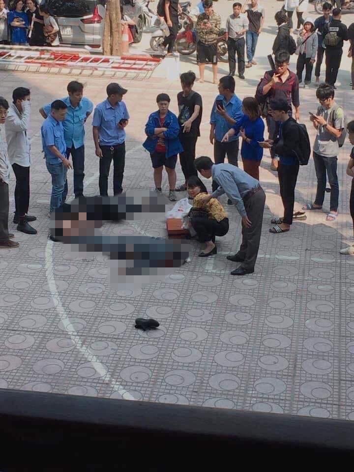 Lãnh đạo UBND phường Văn Quán, quận Hà Đông cho biết, nạn nhân tử vong quê Thanh Hoá, trong khi nhảy từ trên cao xuống không may rơi trúng một sinh viên đang đi bộ dưới sân trường khiến nam sinh viên bị thương nặng.