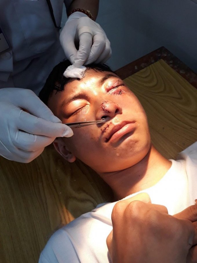 Nam sinh phải khâu hơn 20 mũi. Ảnh: báo Pháp Luật Việt Nam