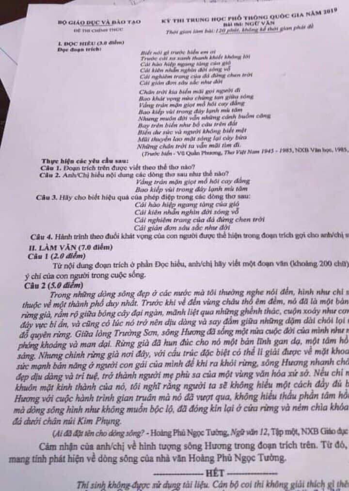 Bức ảnh chụp đề văn được chia sẻ trên MXH ngay sau khi phát đề 60 phút.
