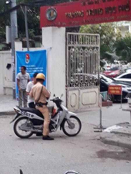 Rất nhanh chóng hai đồng chí đã hỏi han thì được biết đây là một thí sinh dự thi THPT Quốc gia năm nay. Thí sinh này là Bạch Ngọc Dũng, sinh năm 2000, trú tại Mỗ Lao, Hà Đông, Hà Nội. Sáng nay, Dũng đang đi thi môn thứ ba của Kỳ thi THPT tại điểm thi Trường THPT Lê Lợi (Hà Đông, Hà Nội) thì xe bị hỏng, phải xuống dắt bộ.