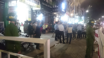 Nhiều người dân hiếu kỳ tập trung theo dõi bên ngoài hiện trường vụ án.