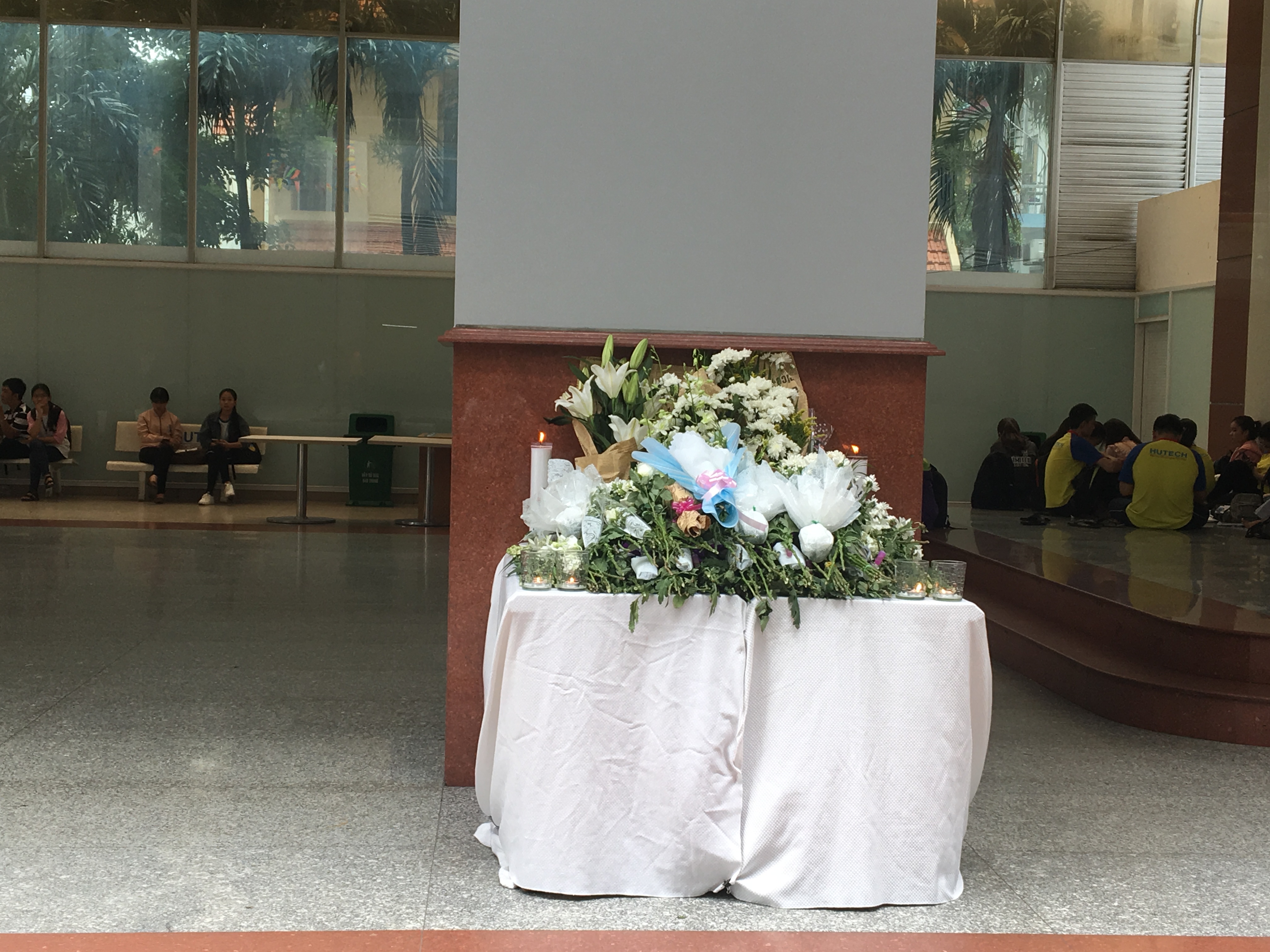 Gia đình cho biết, phía nhà trường đã cử khá nhiều người đến phụ lo hậu sự cho Long. Các thầy cô trong Ban giám hiệu cũng có mặt từ sáng sớm nay để viếng nam sinh xấu số. Ở sân trường Hutech, nơi Long gặp tai nạn, nhà trường, các bạn sinh viên cũng đặt bàn hoa tưởng nhớ chàng sinh viên năm 3.