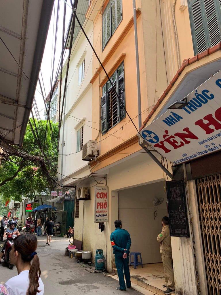 Nhận tin báo, Công an phường Ô Chợ Dừa đã có mặt phong toả hiện trường, phối hợp cùng người dân đưa thi thể nam thanh niên xuống sàn nhà để khám nghiệm.