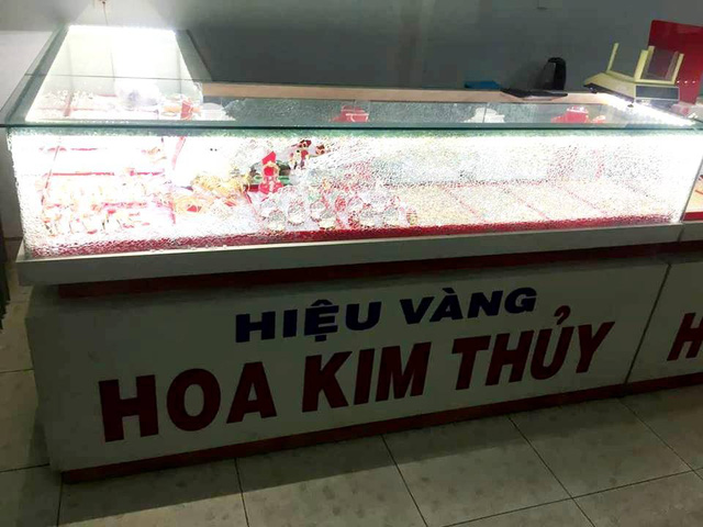 Vào khoảng 19h30 tối 3/8, một thanh niên bịt khẩu trang kín mặt bất ngờ cầm búa xông vào tiệm vàng nói trên đập bể tủ kính rồi lấy đi 3 bộ vòng trang sức 18k trị giá hơn 50 triệu đồng.