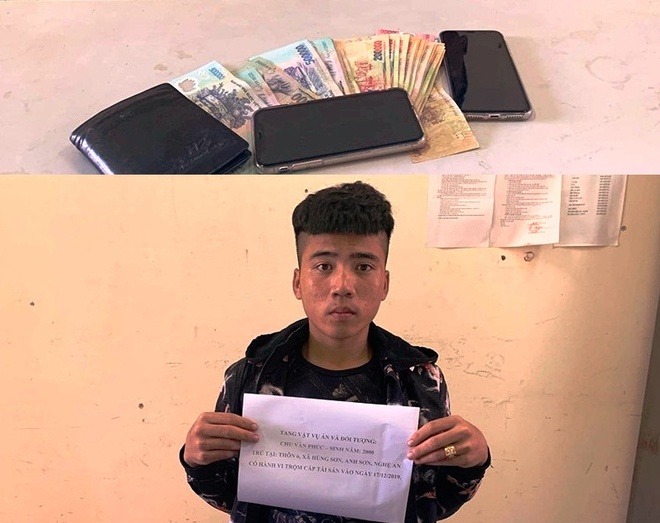 Tại cơ quan công an, đối tượng Phúc đã khai nhận lấy trộm số tiền nêu trên, sau đó bắt xe khách xuống thành phố Vinh mua 2 điện thoại IPhone X, quần áo, tiêu xài cá nhân.