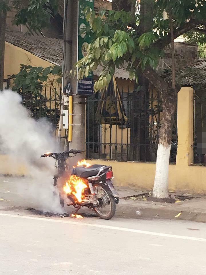 Mới đây, tài khoản facebook N.H.X. đã đăng tải những hình ảnh một xe máy bốc cháy dữ dội trên đường Lý Thái Tổ (phường Trần Phú, thành phố Bắc Giang). Theo đó vụ việc xảy ra vào khoảng 17h chiều, ngày 30/4 trước đồn công an phường Trần Phú.