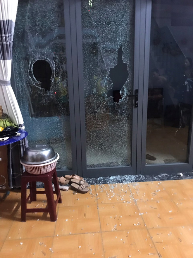 Cửa kính nhà dân bị đối tượng ném đá, đập phá. Ảnh: Văn Tiến/Thanh Niên