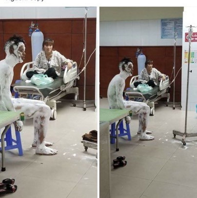 Đứng bên ngoài hành lang Khoa hồi sức cấp cứu, Viện bỏng Quốc gia, chị T. (42 tuổi, mẹ của L.) vẫn chưa hết lo lắng cho sức khỏe của con. Lúc này, L. đang được bạn gái là Mai Thị H. (18 tuổi, quê Thanh Hóa) chăm sóc trong phòng bệnh.