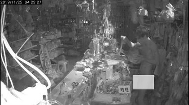 Nam thanh niên đột nhập cửa tiệm tạp hóa trộm cắp tài sản. Ảnh: Tổ Quốc