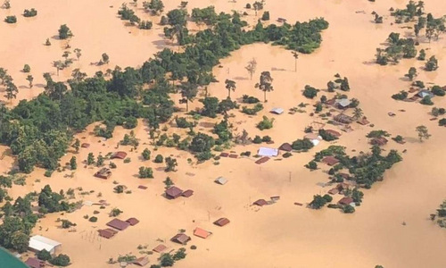 Vụ vỡ đập khiến 1.300 ngôi nhà chìm trong nước lũ. Ảnh: VNE.
